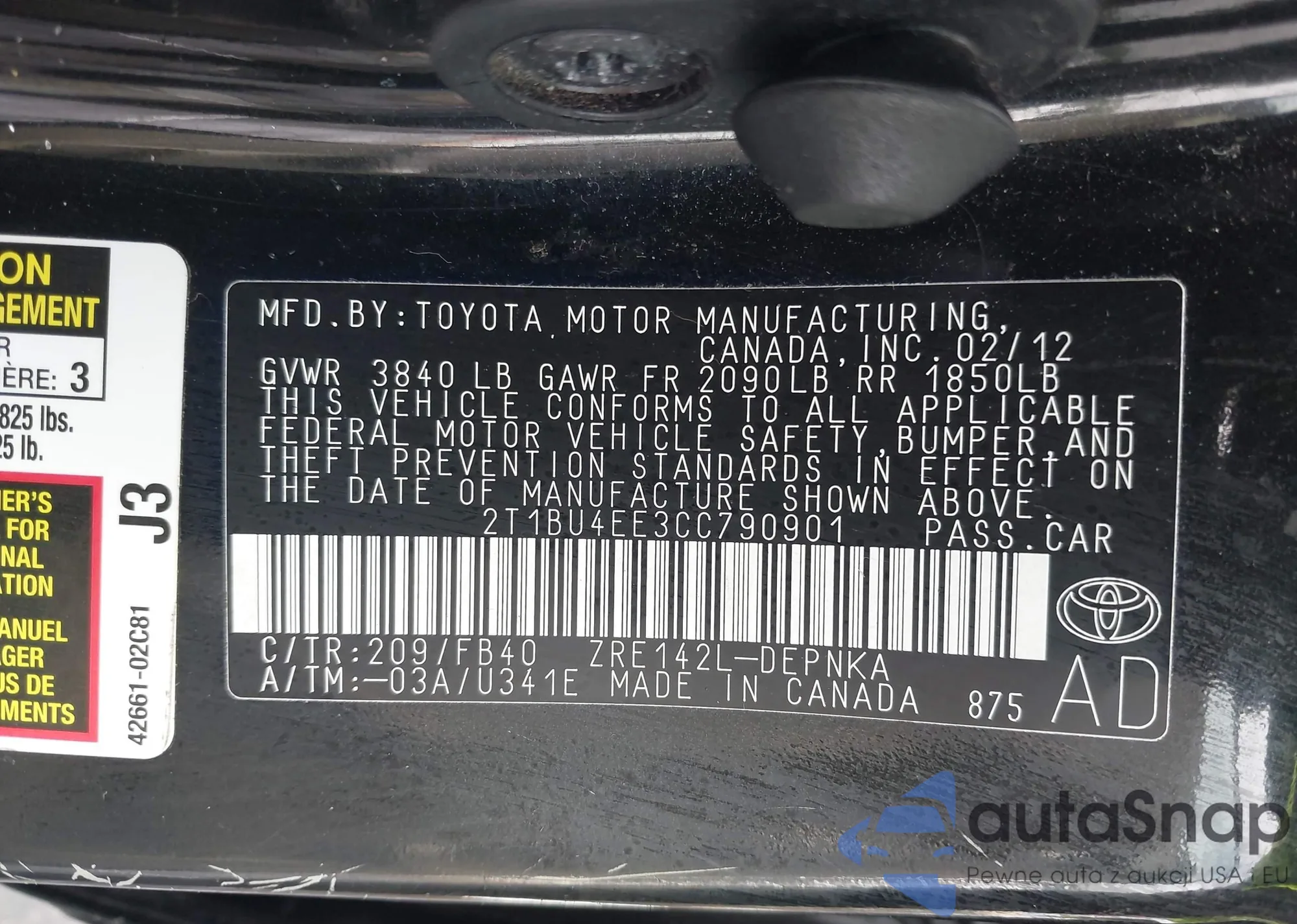 VIN: 2T1BU4EE3CC790901