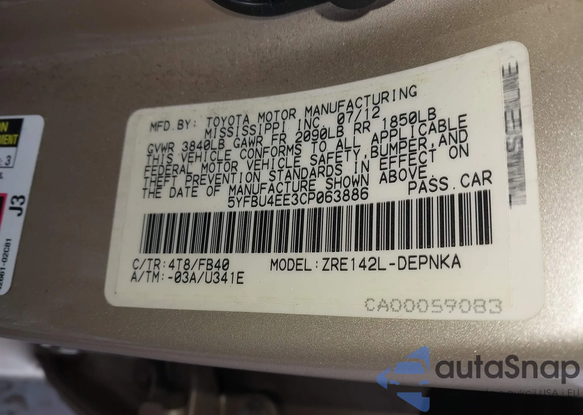 VIN: 5YFBU4EE3CP063886