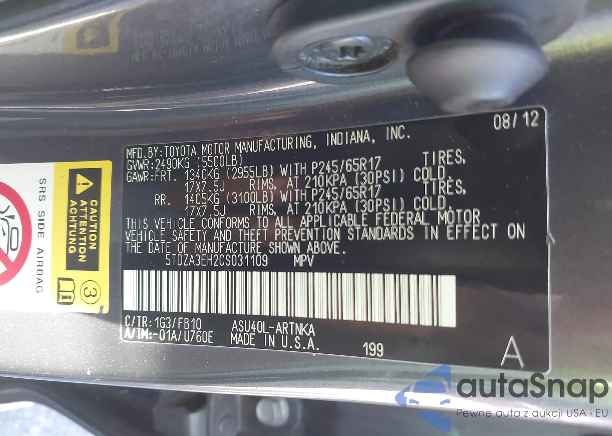 VIN: 5TDZA3EH2CS031109
