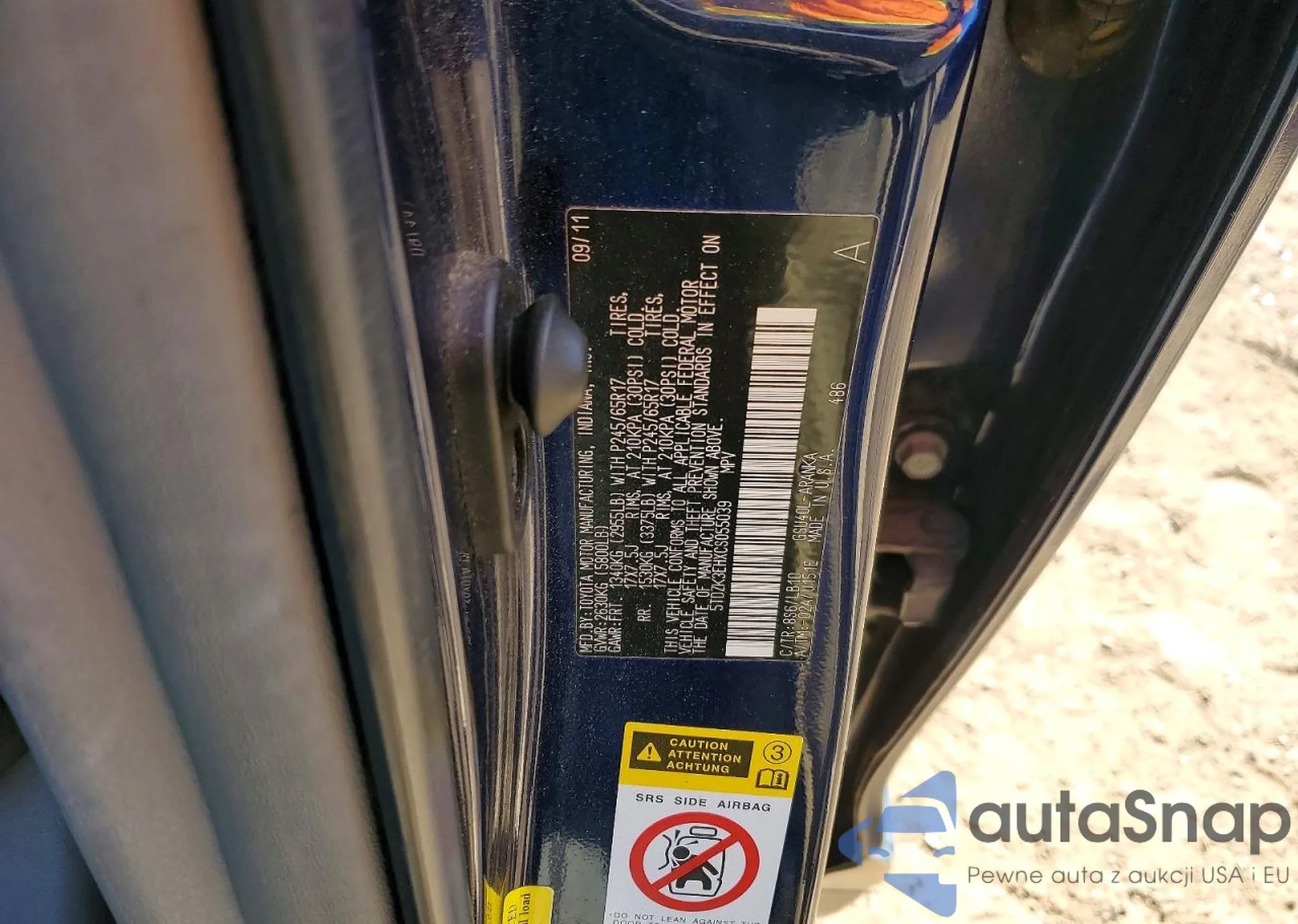 The car Toyota Highlander 2012 (VIN 5TDZK3EHXCS055039) is sold by an unverified seller. We recommend checking the Carfax report and confirming registration possibilities before purchase.