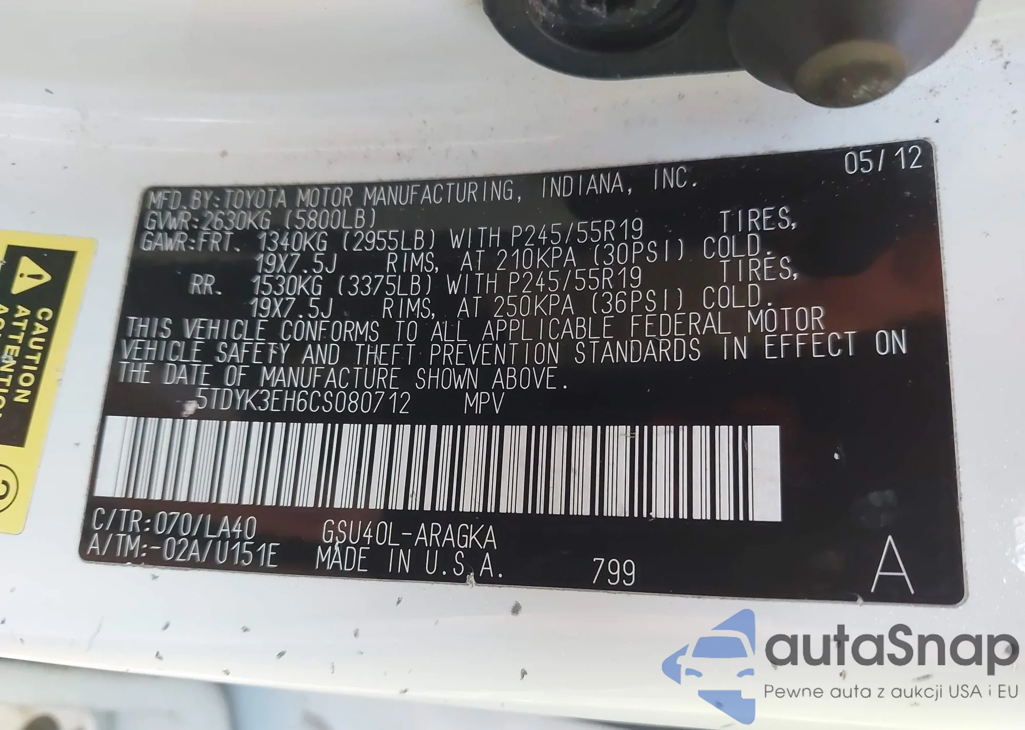 VIN: 5TDYK3EH6CS080712