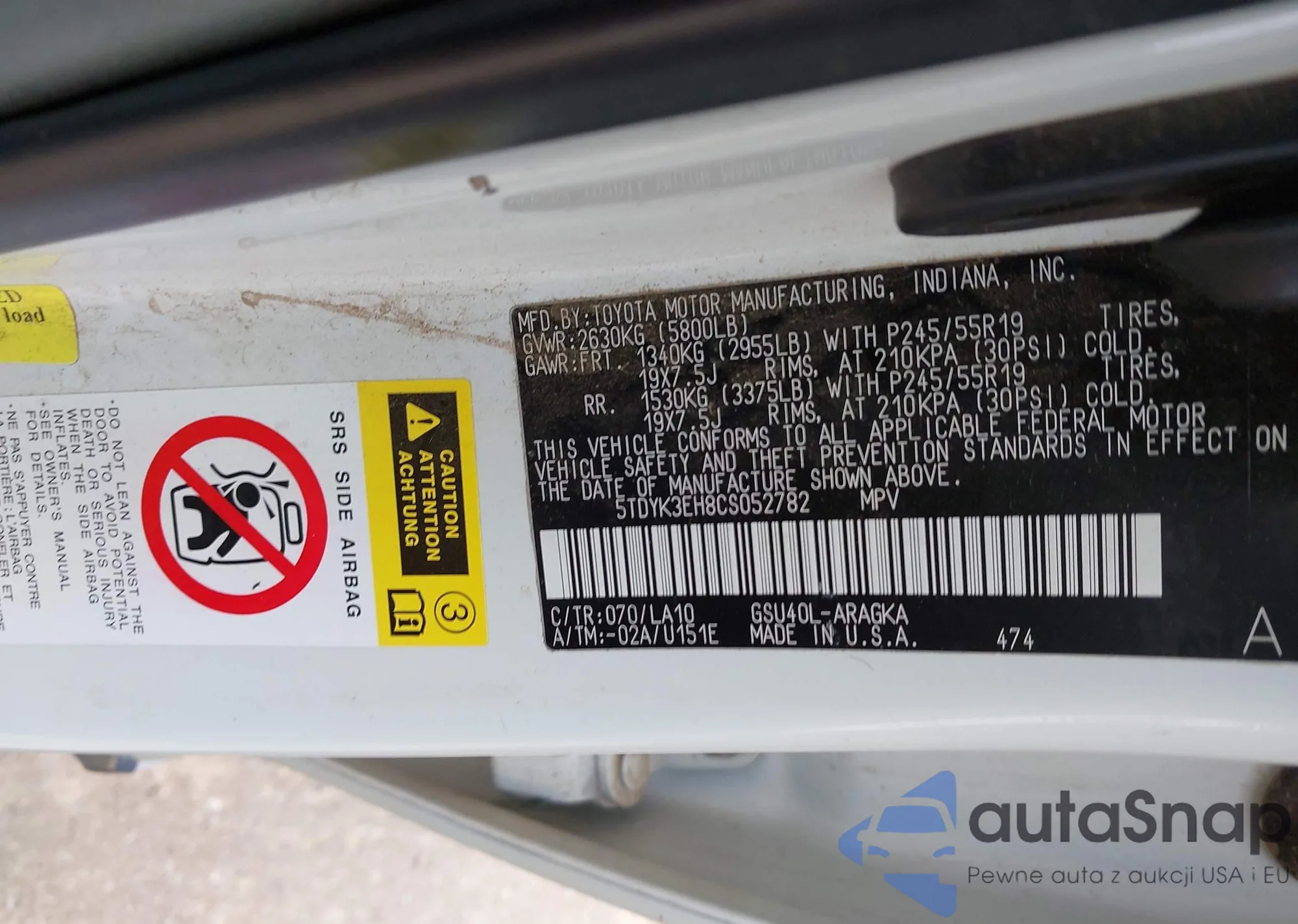The car Toyota Highlander 2012 (VIN 5TDYK3EH8CS052782) is sold by an unverified seller. We recommend checking the Carfax report and confirming registration possibilities before purchase.