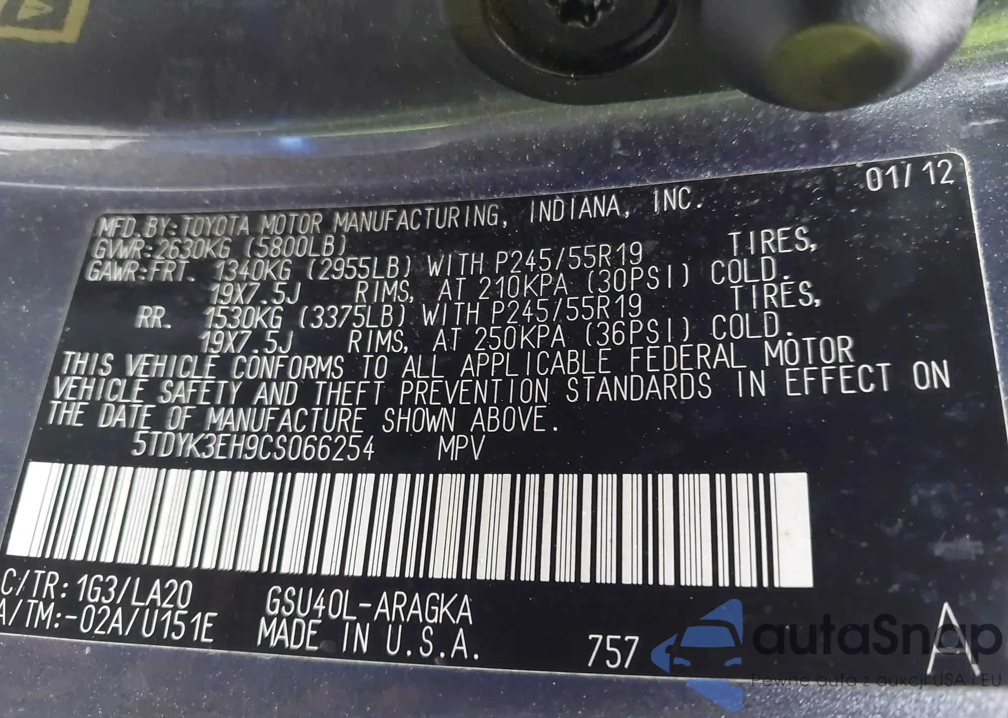 VIN: 5TDYK3EH9CS066254