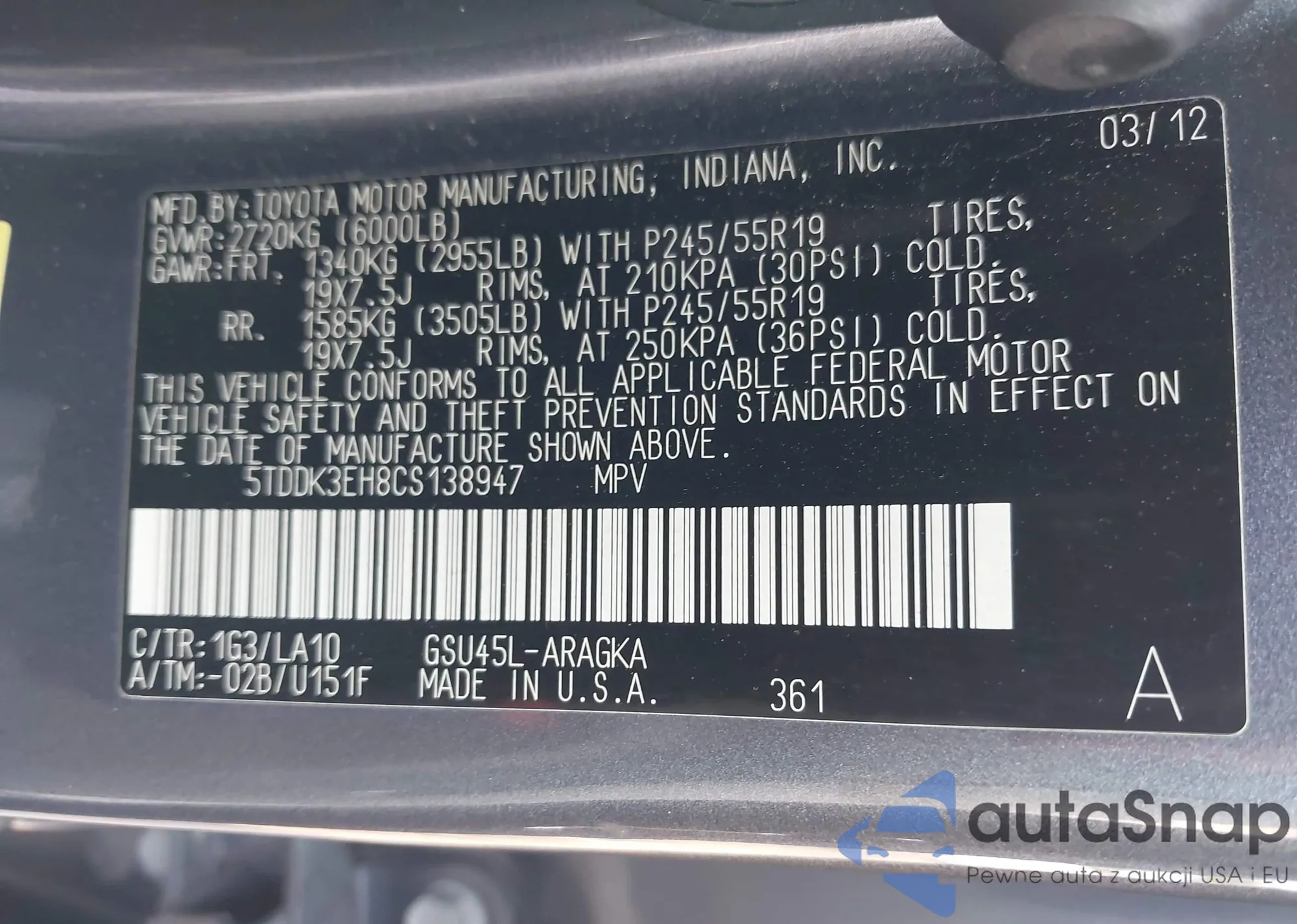 VIN: 5TDDK3EH8CS138947