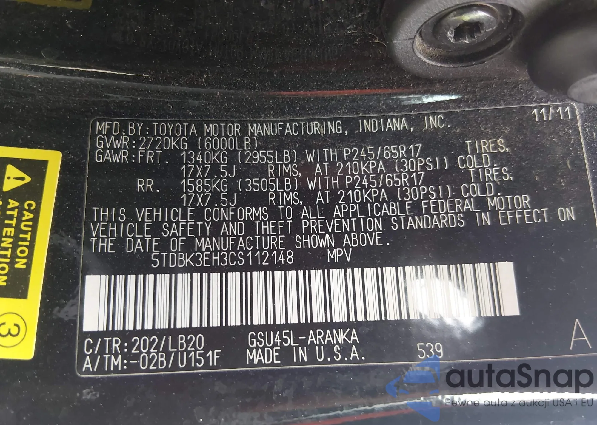 The car Toyota Highlander 2012 (VIN 5TDBK3EH3CS112148) is sold by an unverified seller. We recommend checking the Carfax report and confirming registration possibilities before purchase.