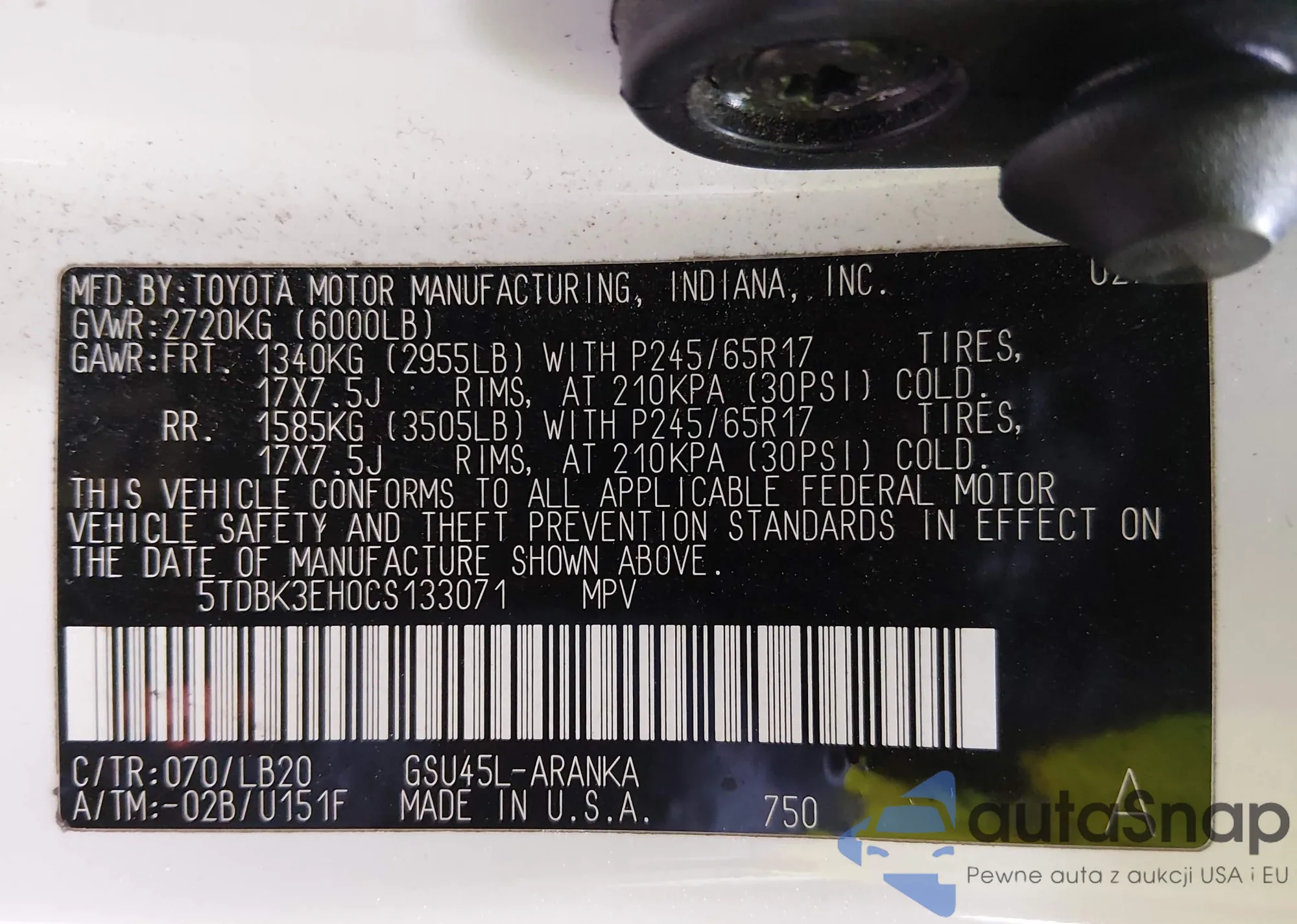 The car Toyota Highlander 2012 (VIN 5TDBK3EH0CS133071) has not been auctioned before. The documents are clean, and the mileage matches or is below the market average. Sold by an insurance company – we recommend purchase. Delivery to the port will take approx. 6–8 weeks.