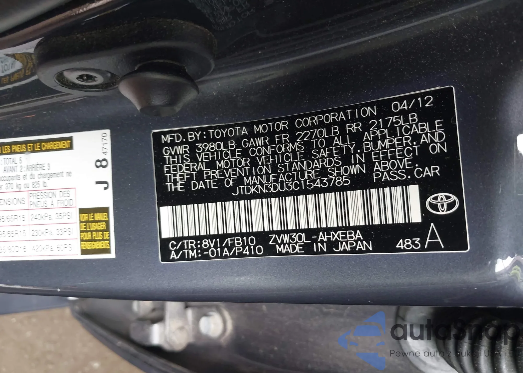 VIN: JTDKN3DU3C1543785