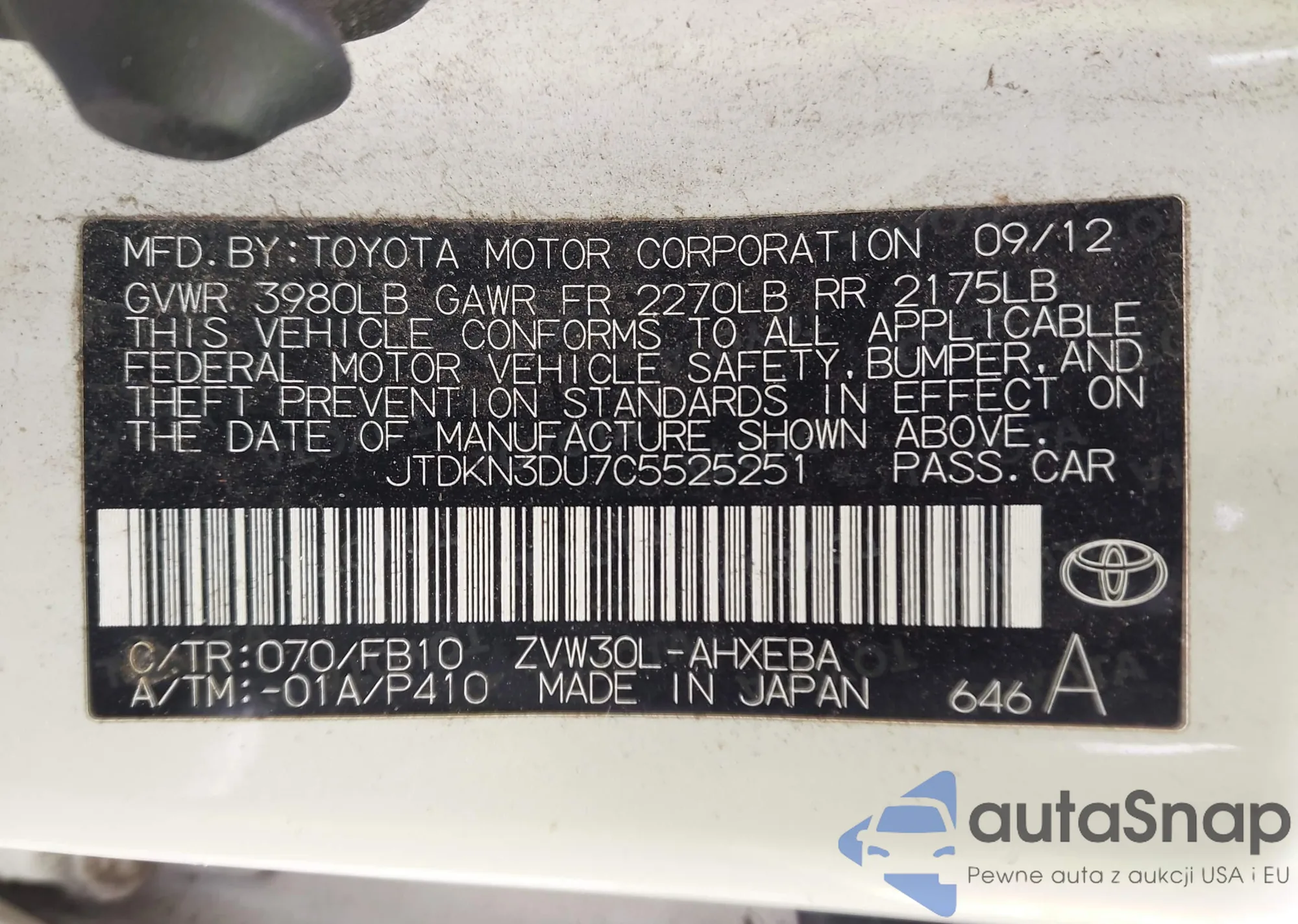 VIN: JTDKN3DU7C5525251