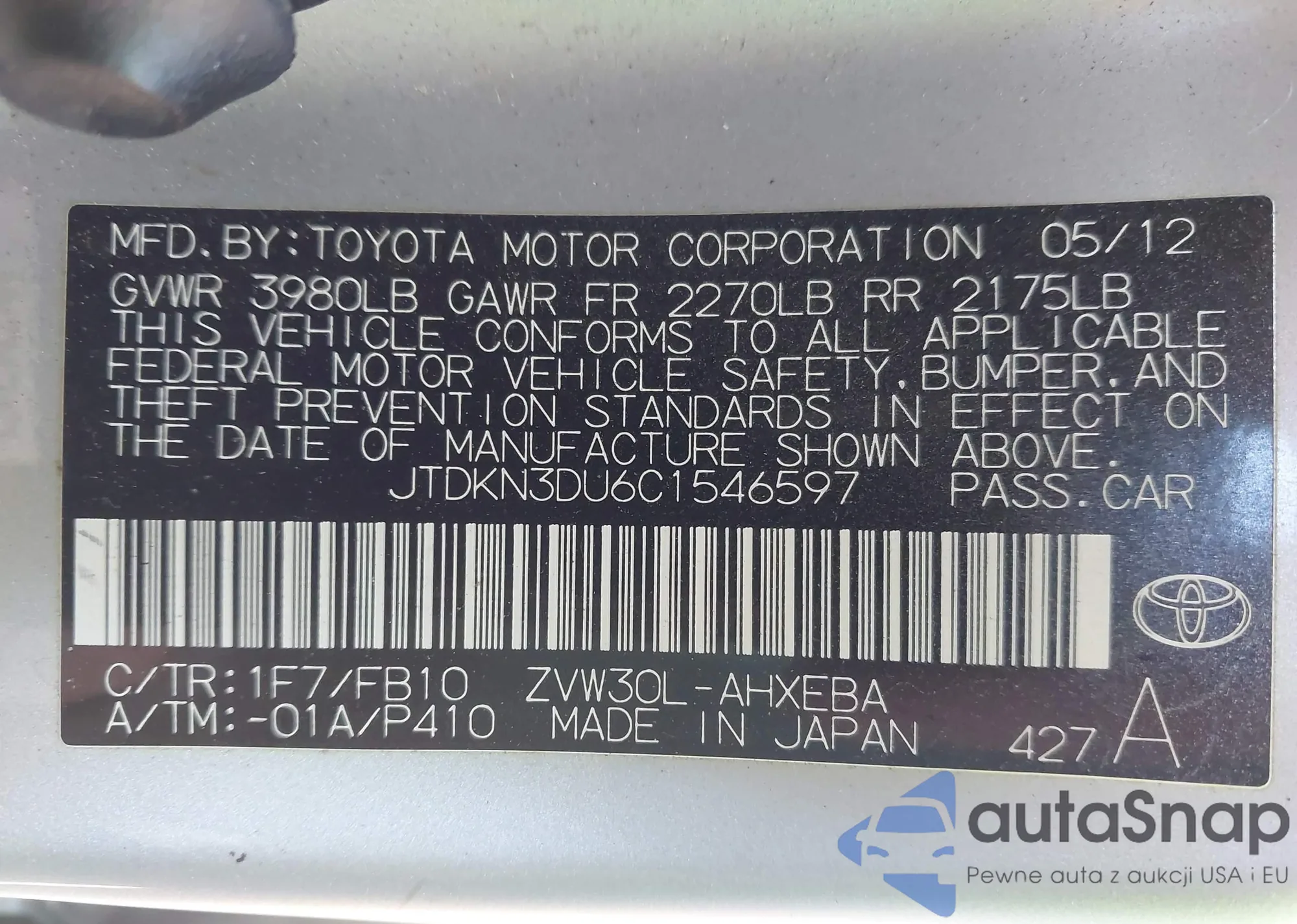 VIN: JTDKN3DU6C1546597