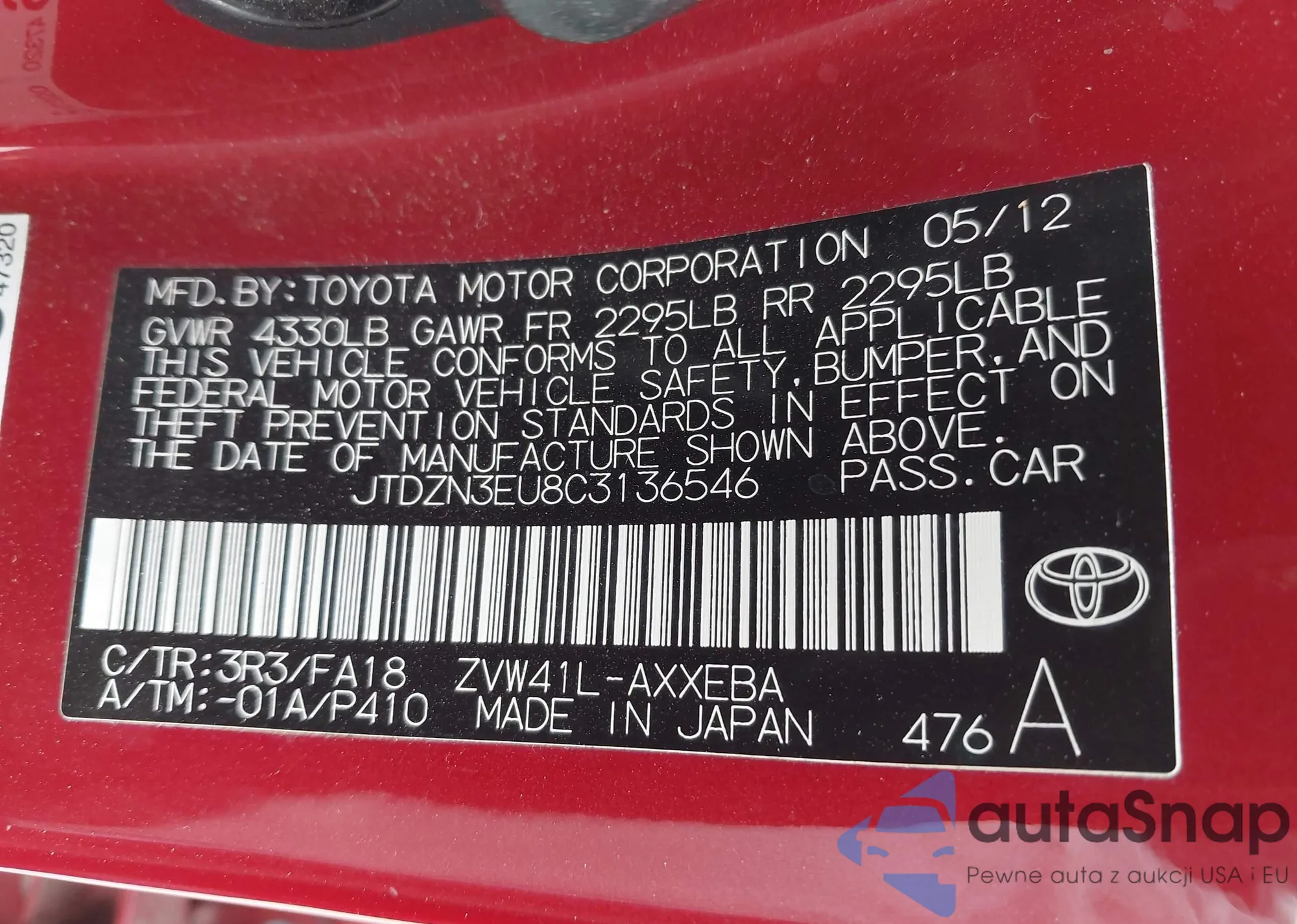 VIN: JTDZN3EU8C3136546