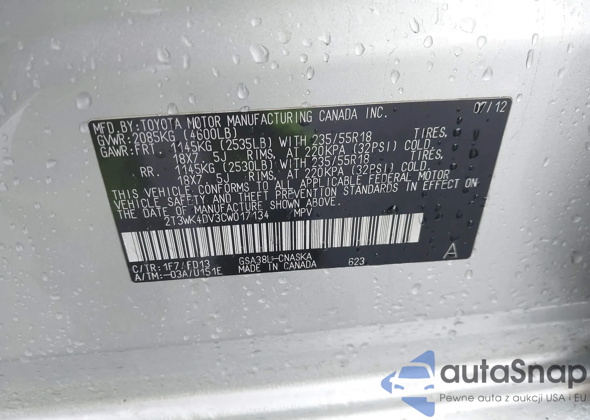 VIN: 2T3WK4DV3CW017134