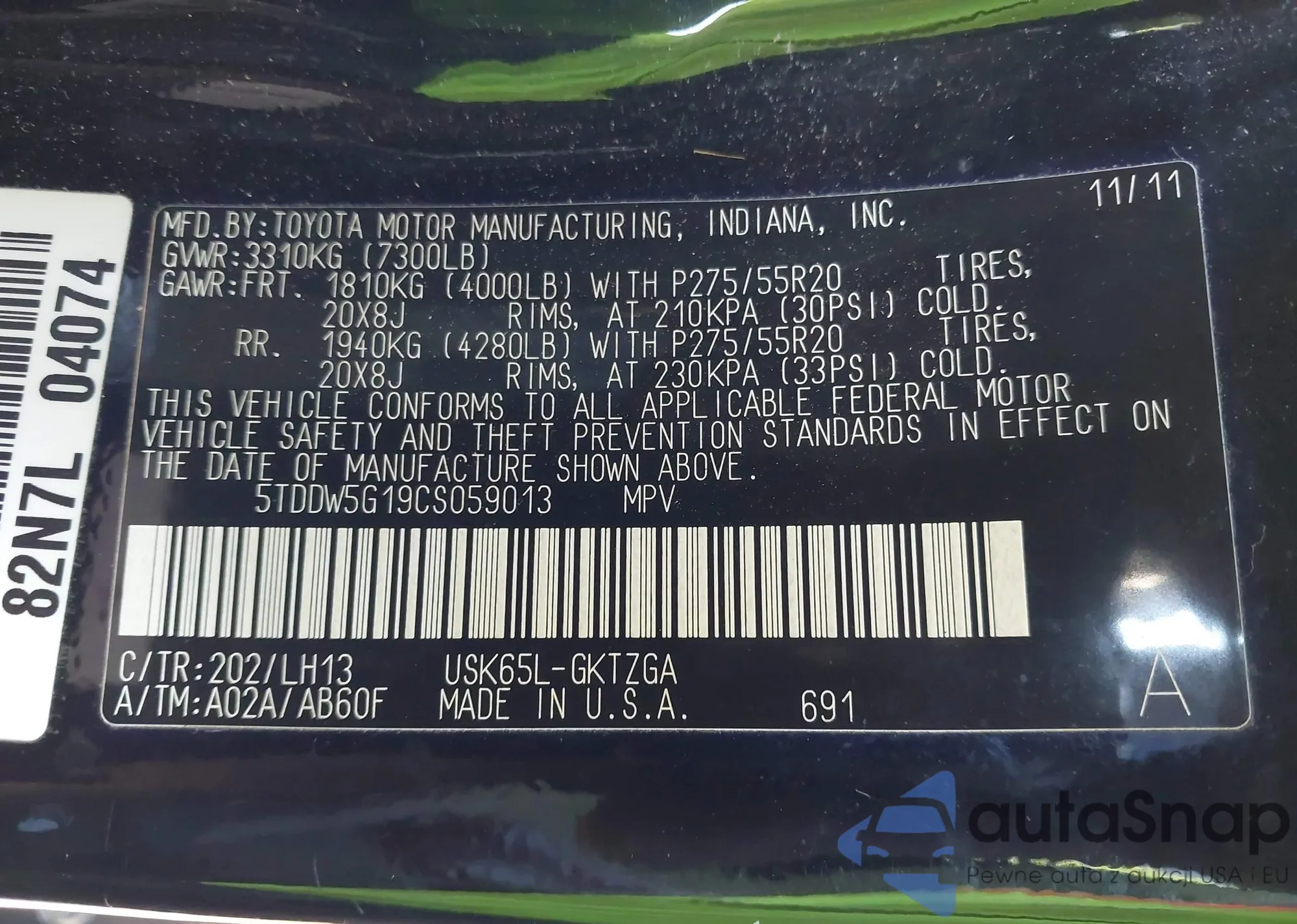 The car Toyota Sequoia 2012 (VIN 5TDDW5G19CS059013) is sold by an unverified seller. We recommend checking the Carfax report and confirming registration possibilities before purchase.