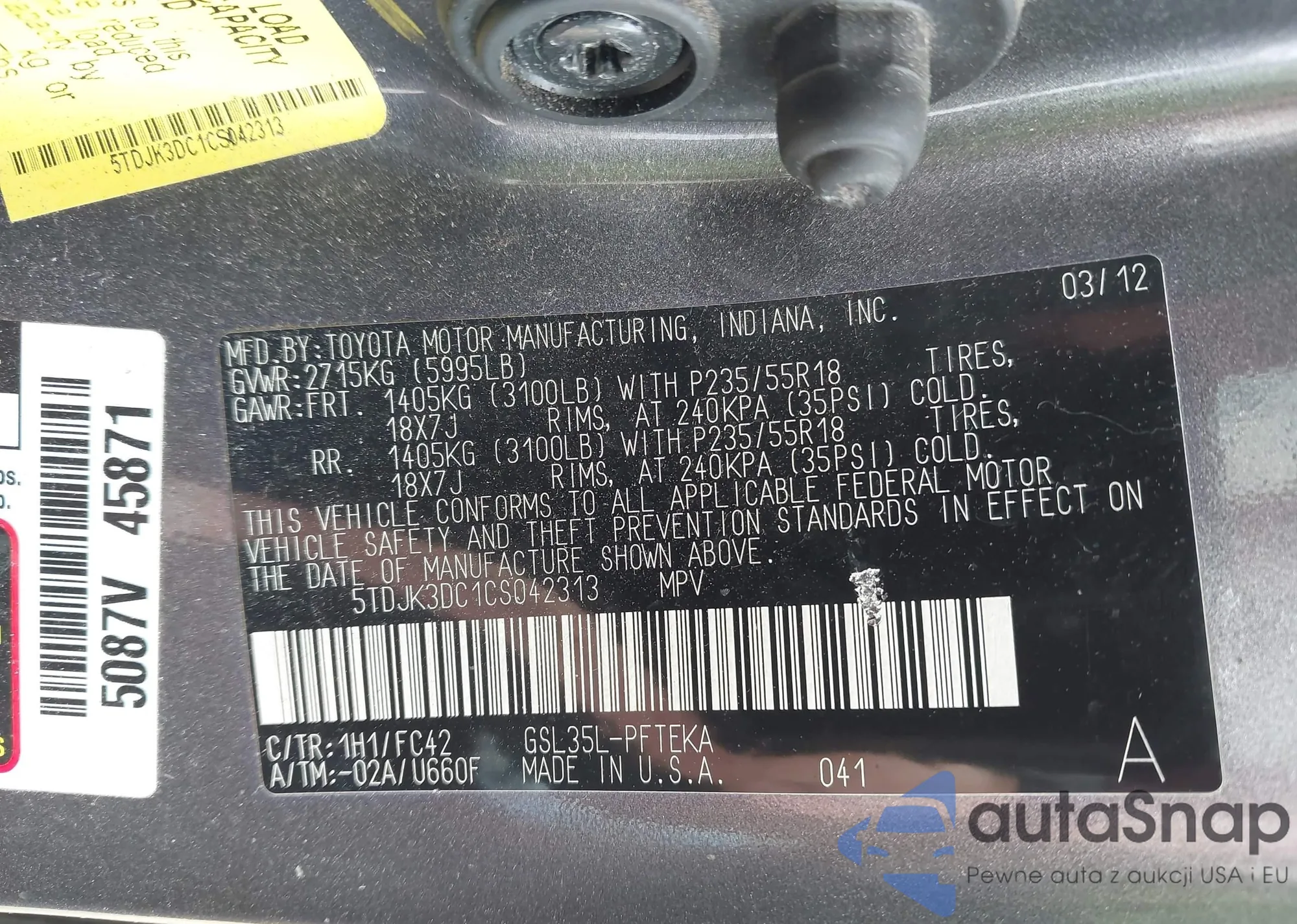 VIN: 5TDJK3DC1CS042313