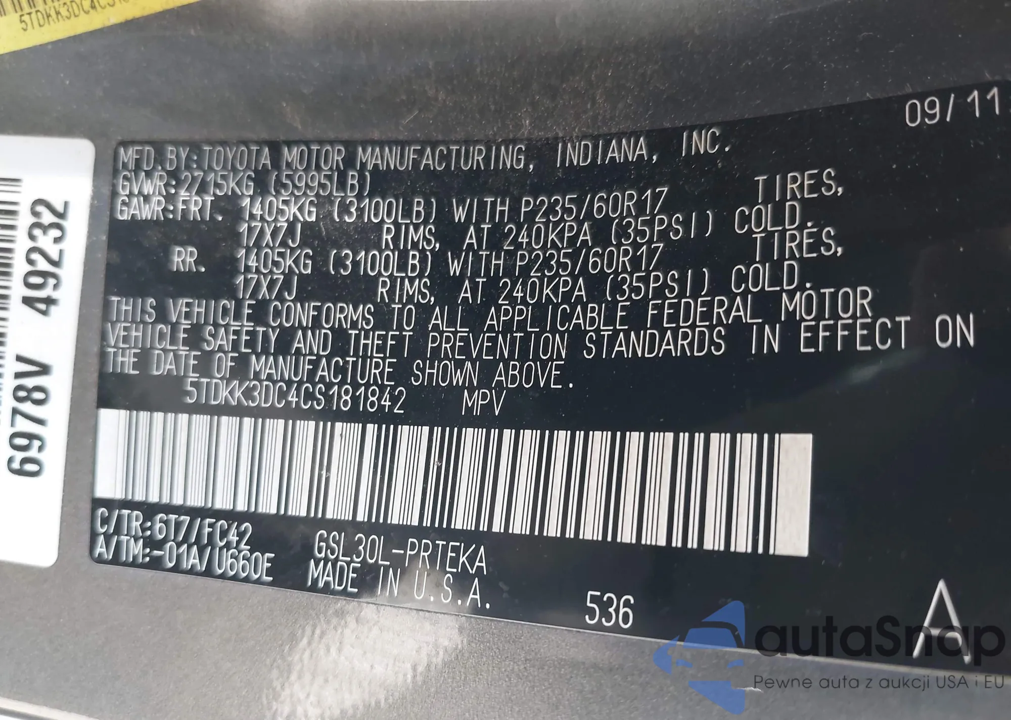 VIN: 5TDKK3DC4CS181842