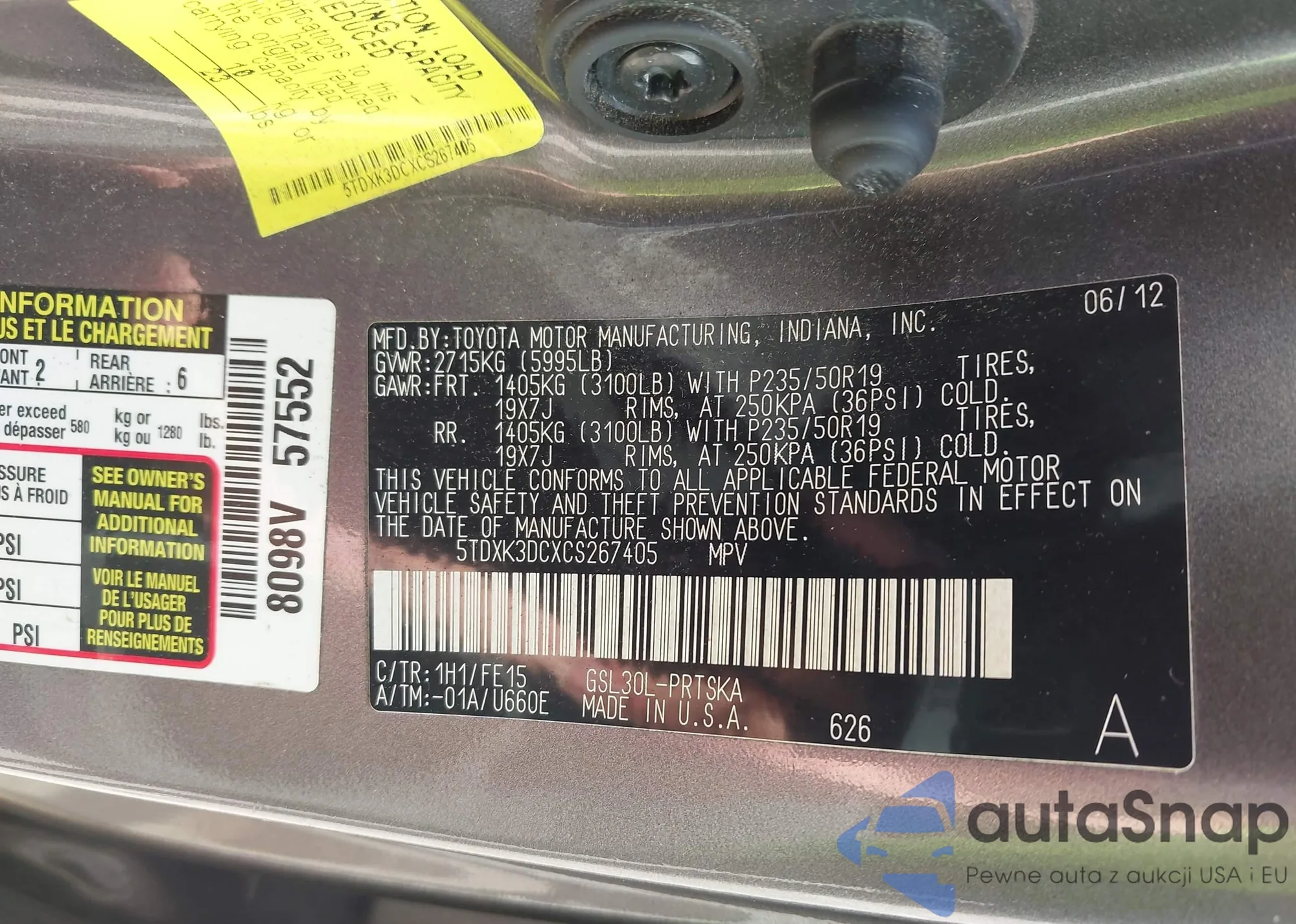 VIN: 5TDXK3DCXCS267405
