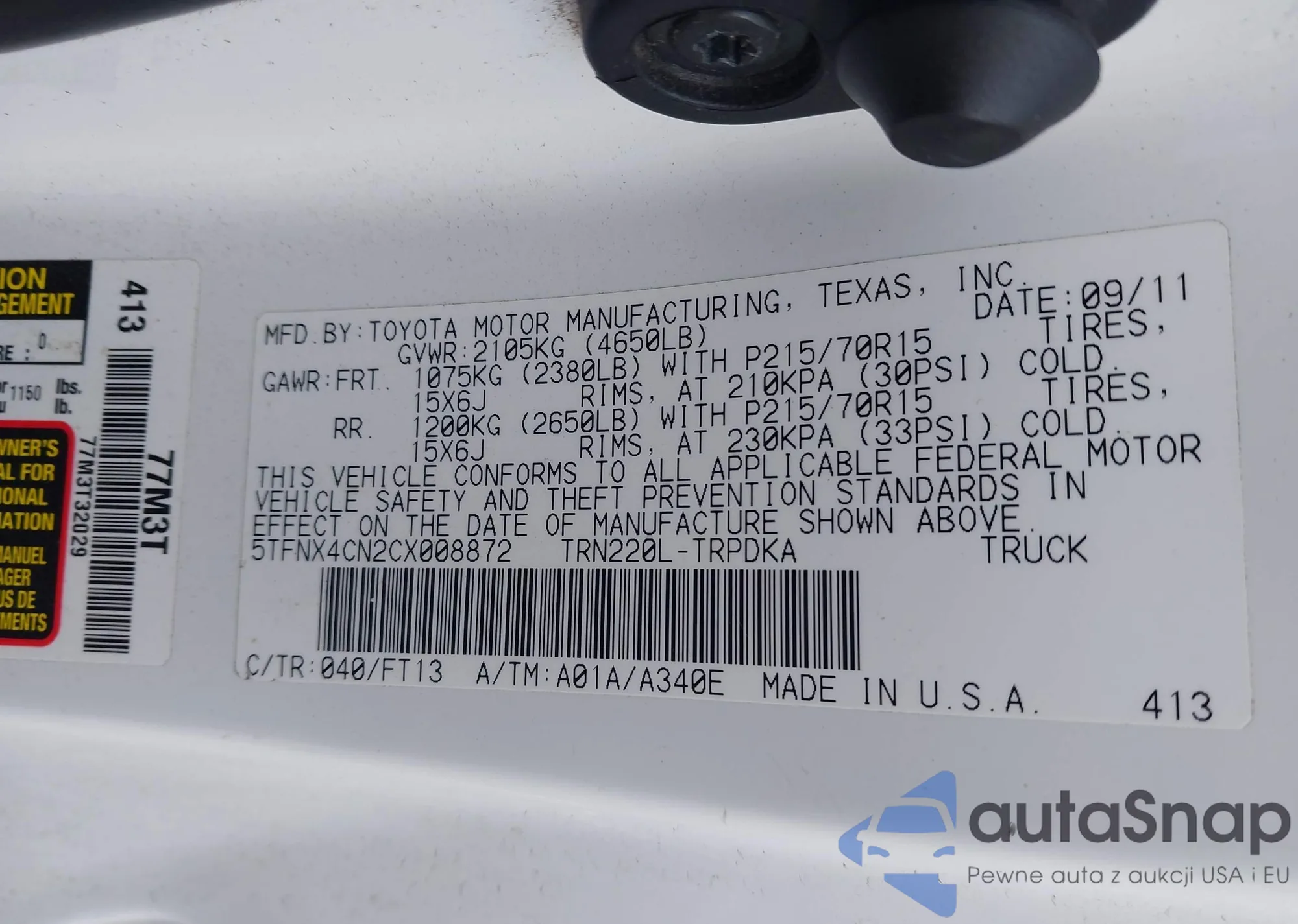 VIN: 5TFNX4CN2CX008872