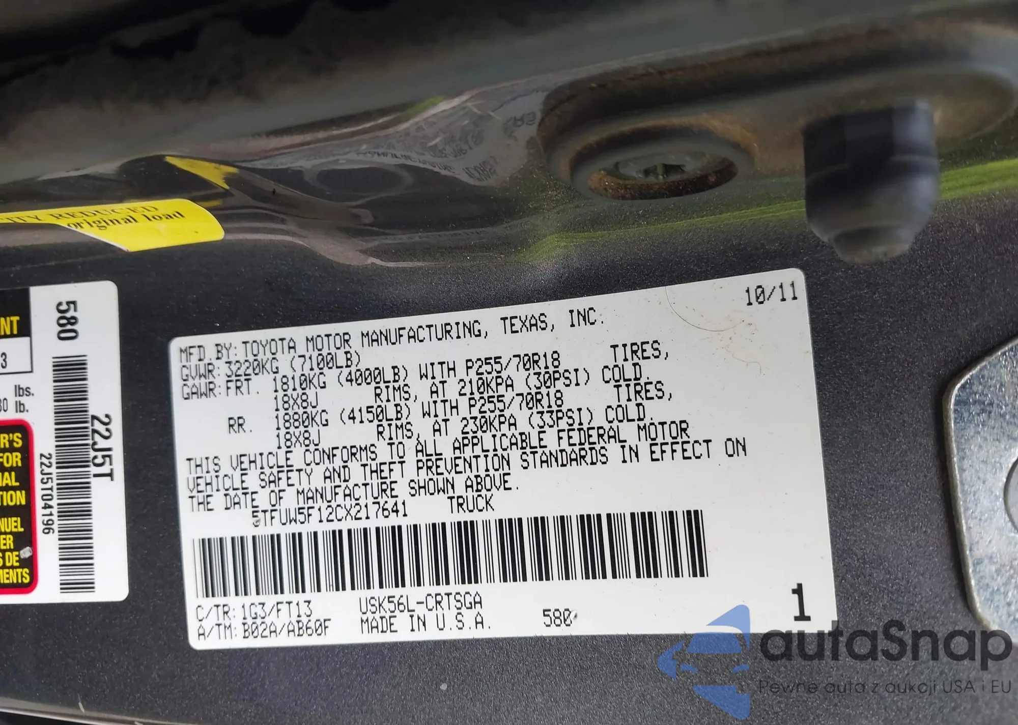 VIN: 5TFUW5F12CX217641
