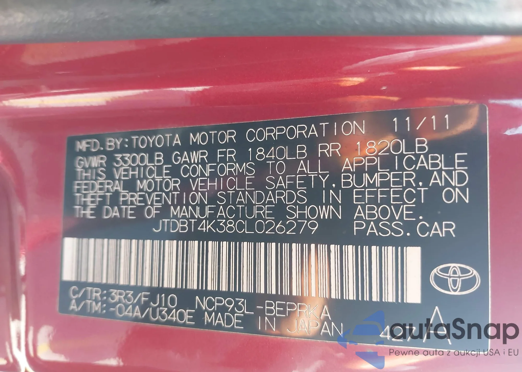 VIN: JTDBT4K38CL026279