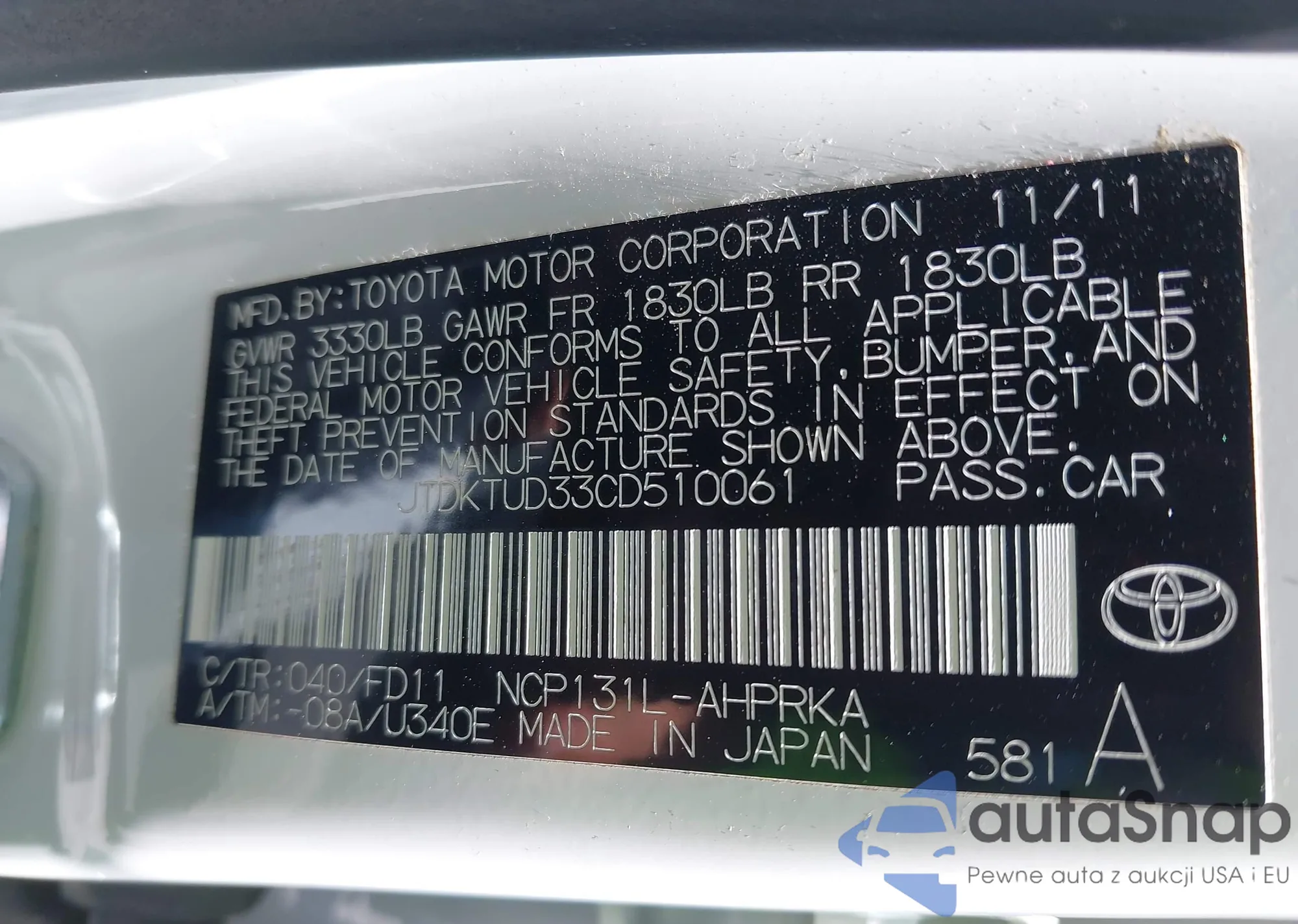 VIN: JTDKTUD33CD510061