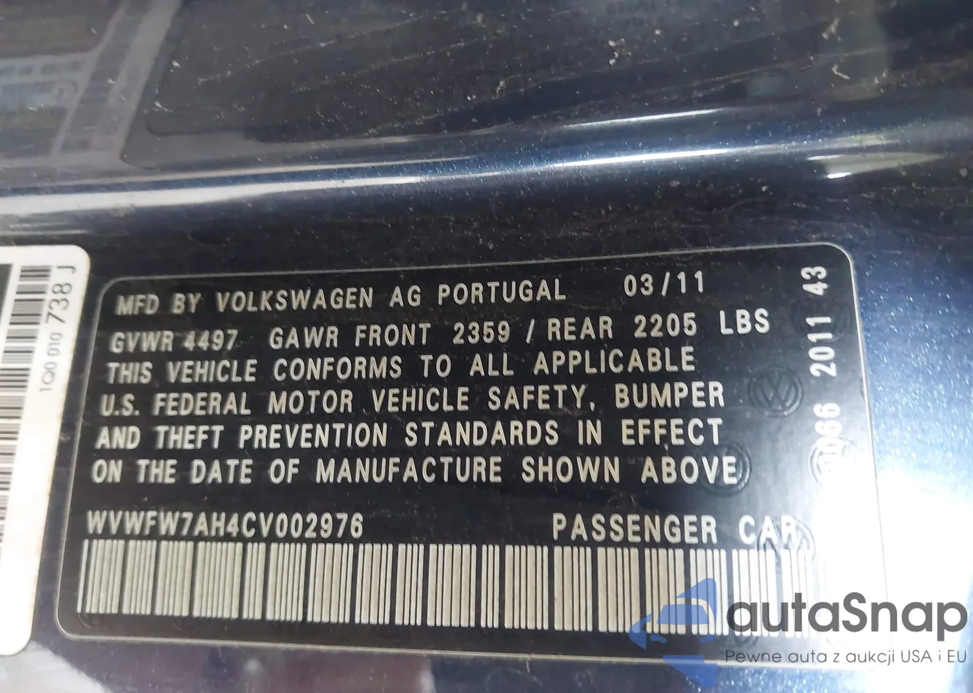 VIN: WVWFW7AH4CV002976