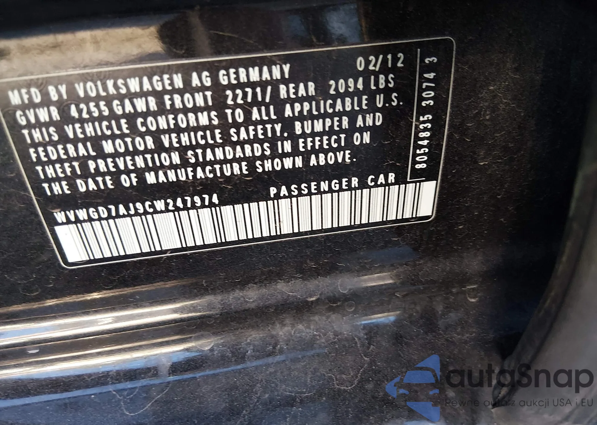 The car Volkswagen GTI 2012 (VIN WVWGD7AJ9CW247974) is sold by an unverified seller. We recommend checking the Carfax report and confirming registration possibilities before purchase.