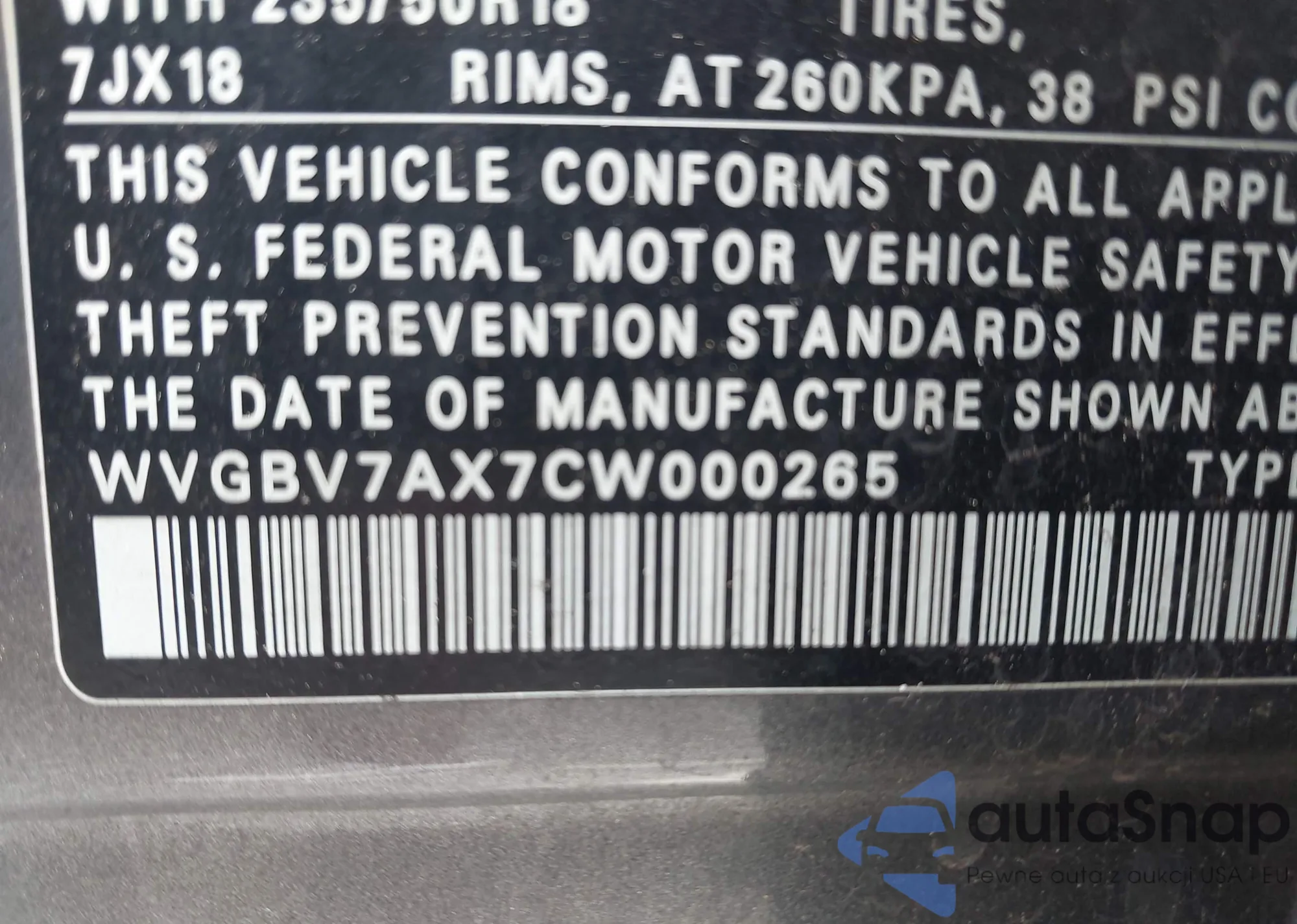 VIN: WVGBV7AX7CW000265