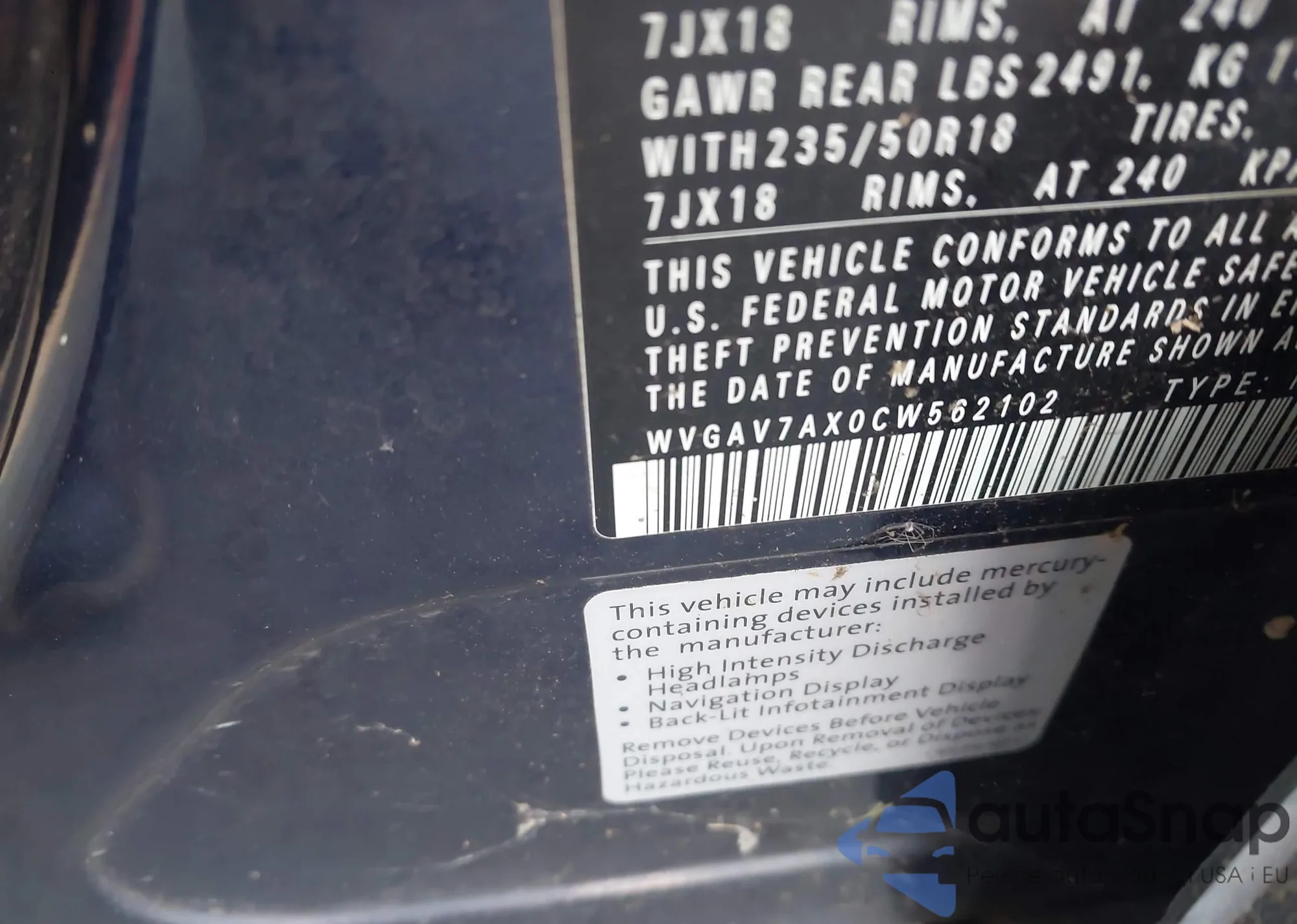 VIN: WVGAV7AX0CW562102