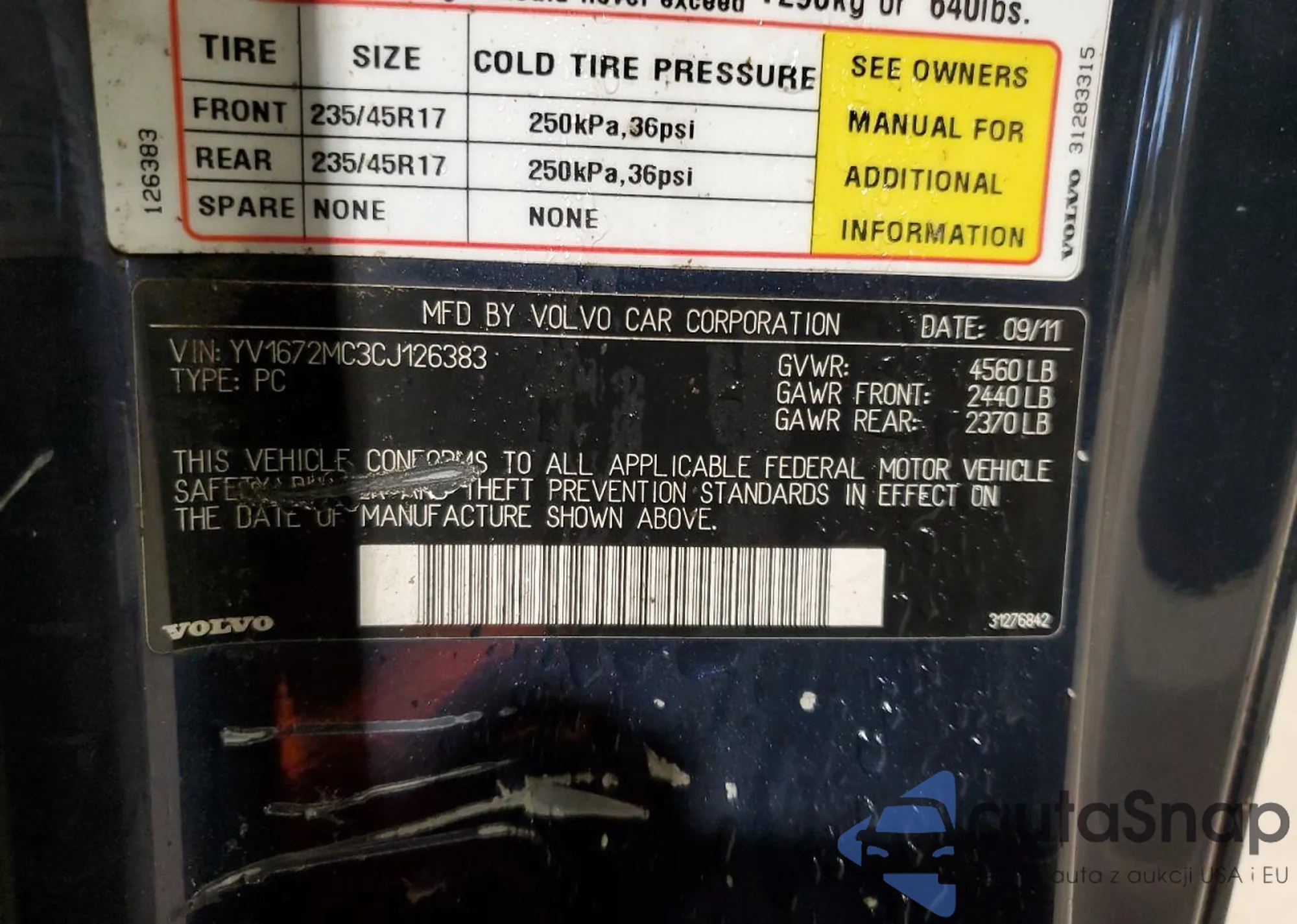 VIN: YV1672MC3CJ126383
