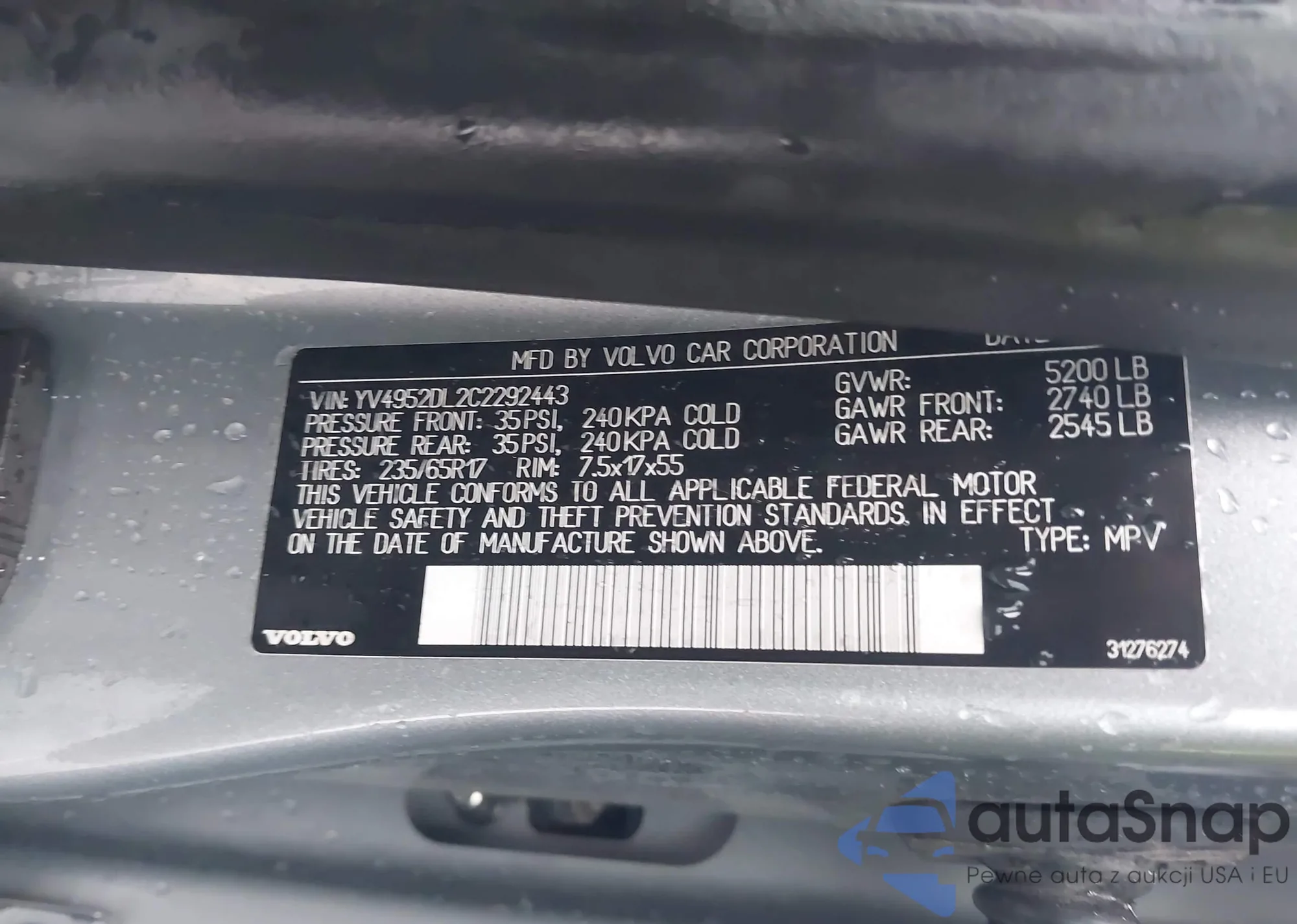 The car Volvo XC60 2012 (VIN YV4952DL2C2292443) has already been auctioned 1 times and/or is sold by an unverified seller. We recommend checking the Carfax report and confirming registration possibilities before purchase.