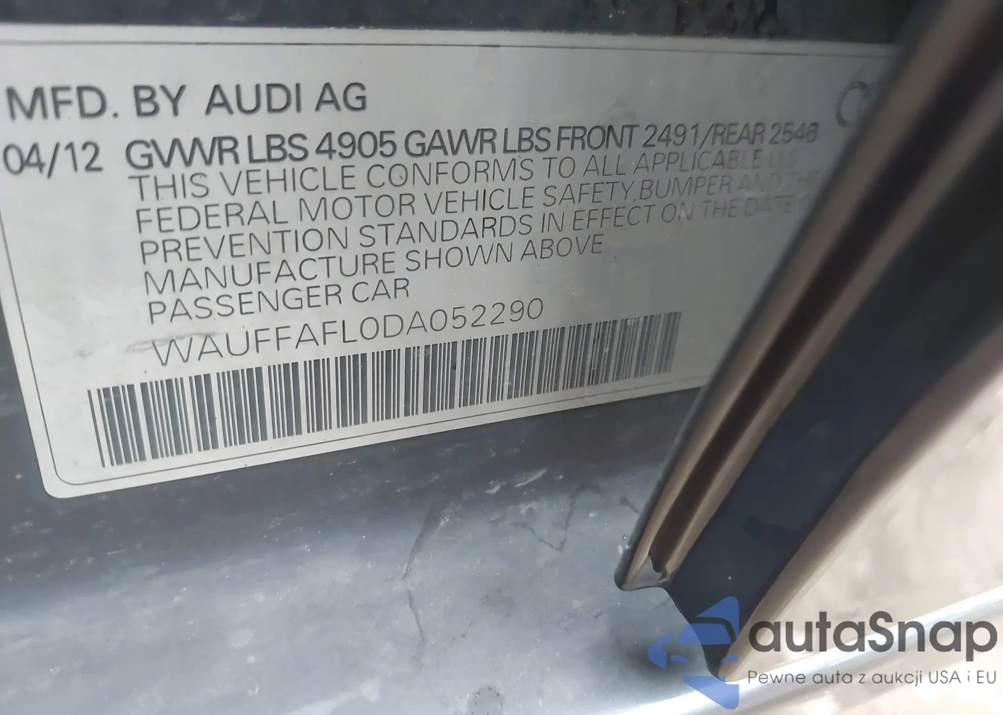 VIN: WAUFFAFL0DA052290