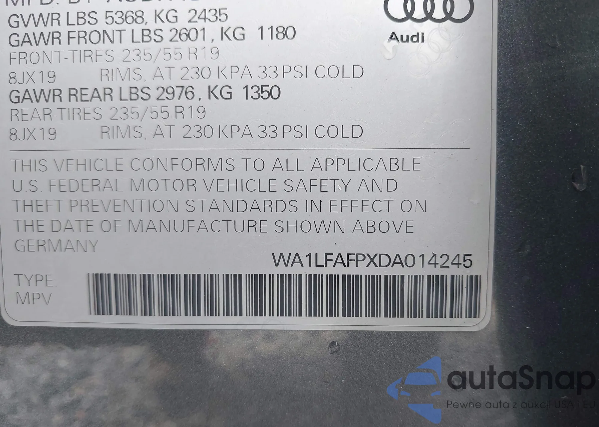 VIN: WA1LFAFPXDA014245