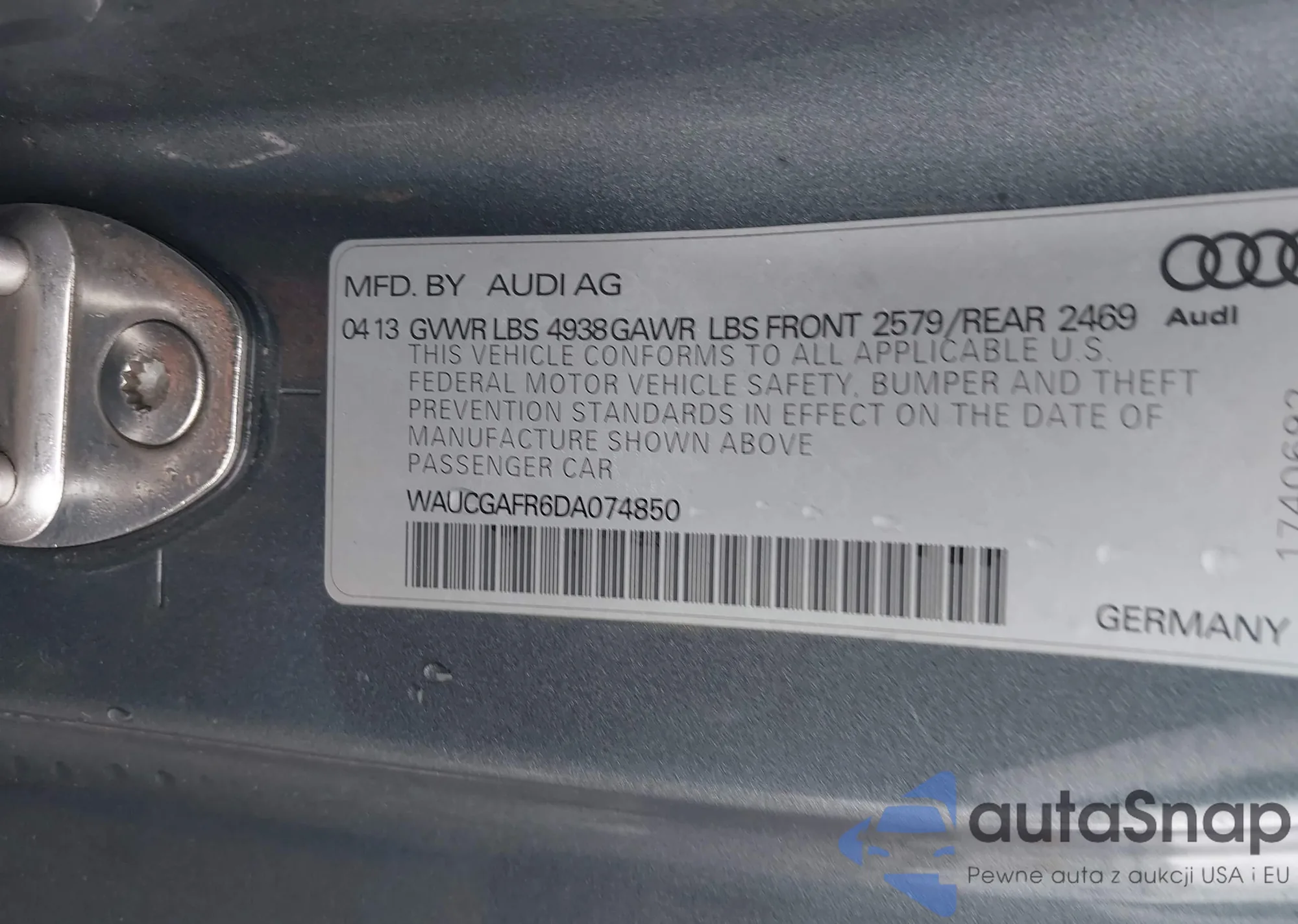 The car Audi S5 2013 (VIN WAUCGAFR6DA074850) has not been auctioned before. The documents are clean, and the mileage matches or is below the market average. Sold by an insurance company – we recommend purchase. Delivery to the port will take approx. 6–8 weeks.