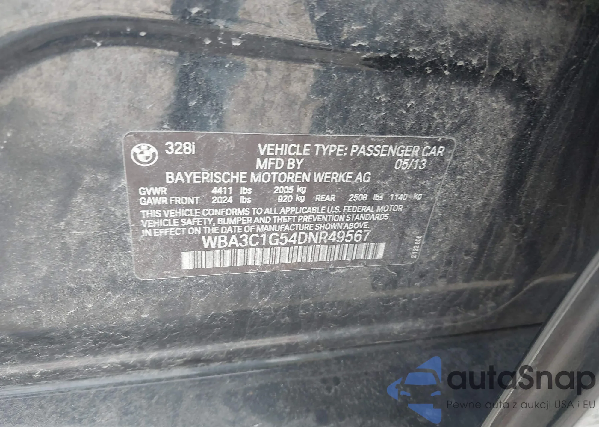 The car BMW 3er 2013 (VIN WBA3C1G54DNR49567) is sold by an unverified seller. We recommend checking the Carfax report and confirming registration possibilities before purchase.