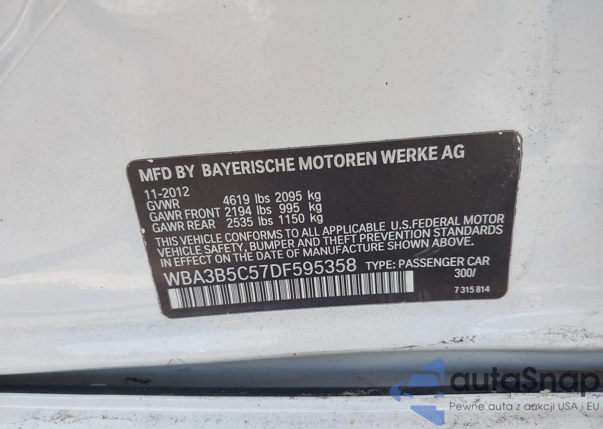 VIN: WBA3B5C57DF595358