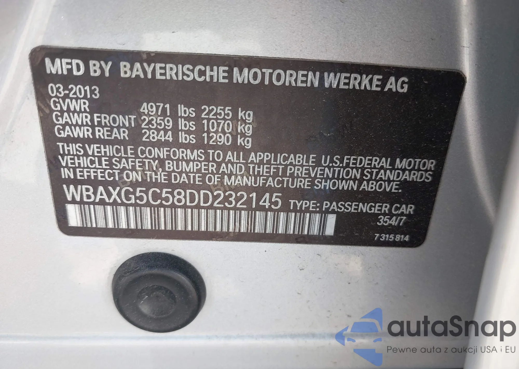 • VIN: WBAXG5C58DD232145