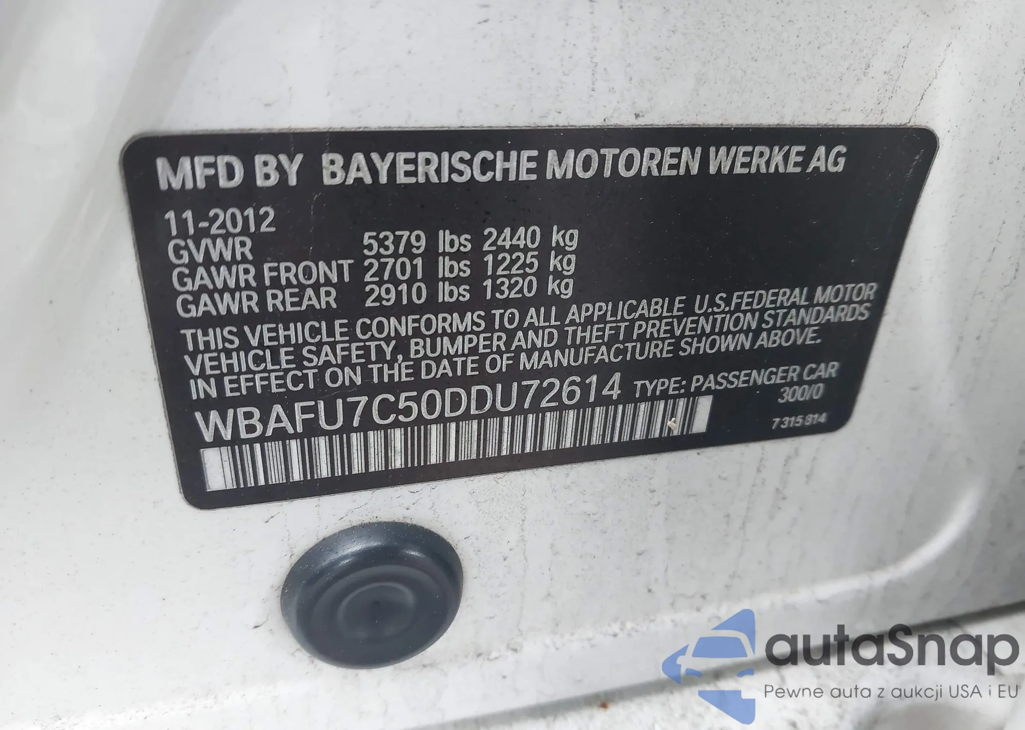 • VIN: WBAFU7C50DDU72614