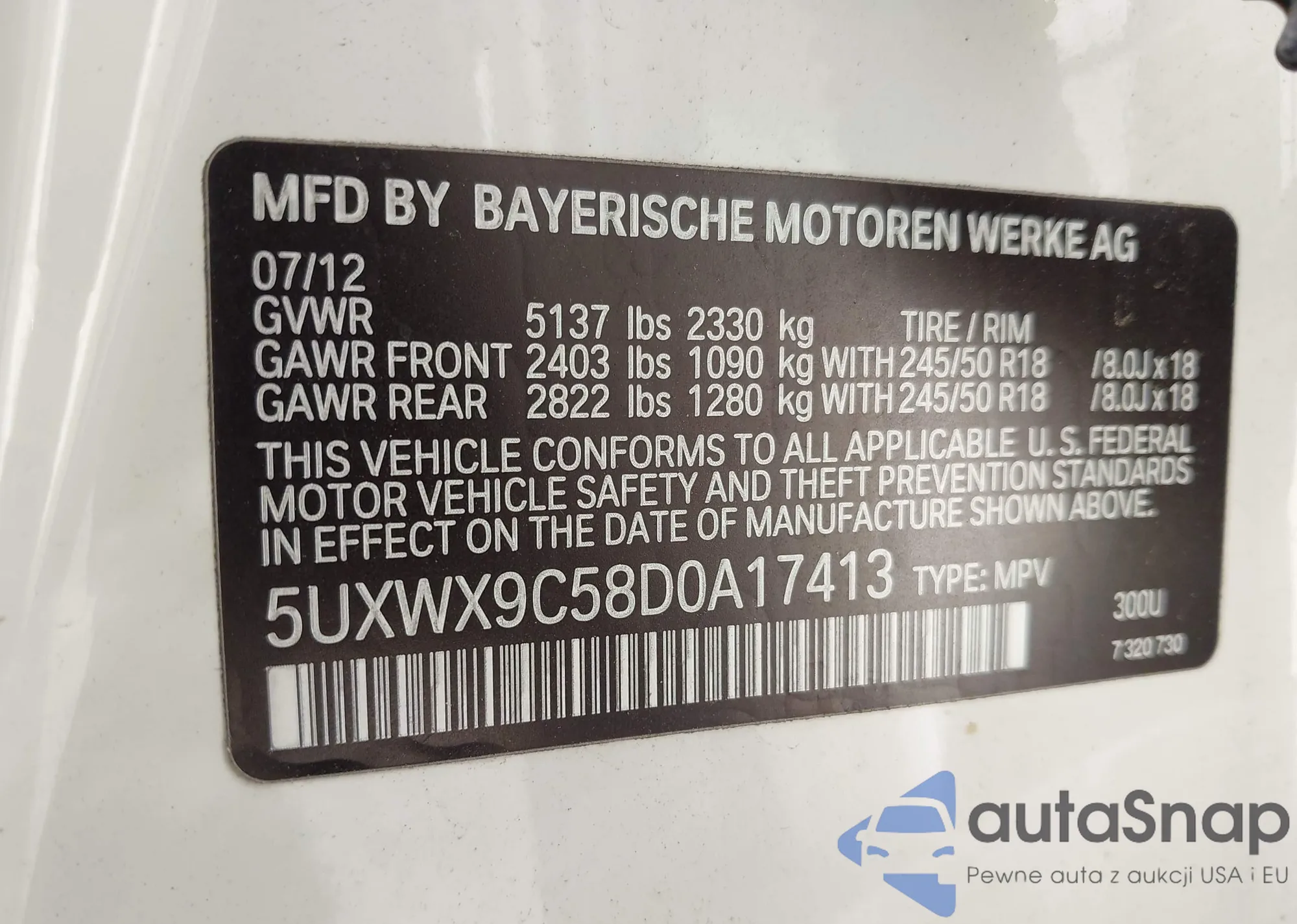 VIN: 5UXWX9C58D0A17413