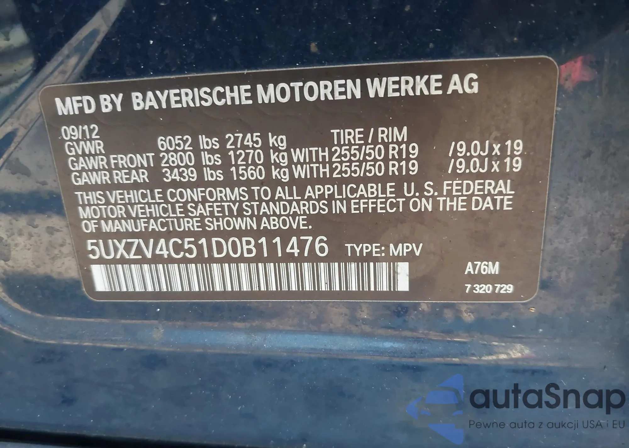 VIN: 5UXZV4C51D0B11476