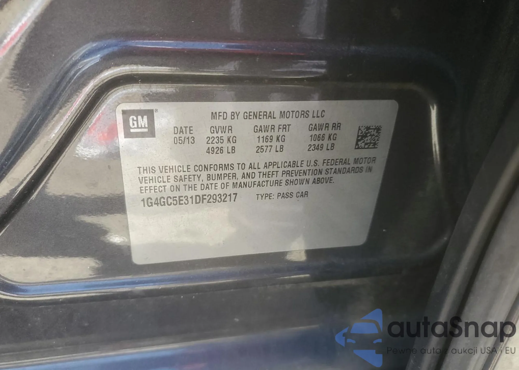 The car Buick LaCrosse 2013 (VIN 1G4GC5E31DF293217) is sold by an unverified seller. We recommend checking the Carfax report and confirming registration possibilities before purchase.