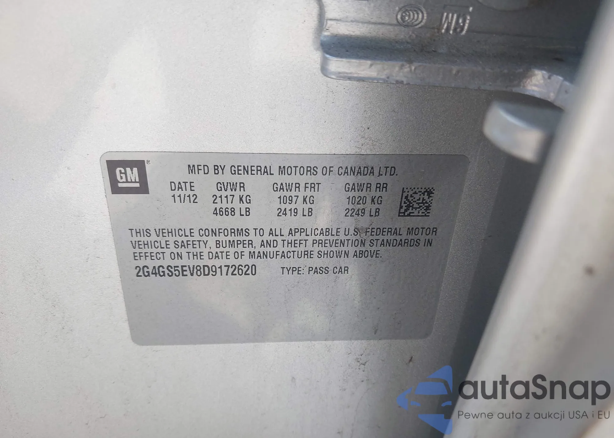 VIN: 2G4GS5EV8D9172620