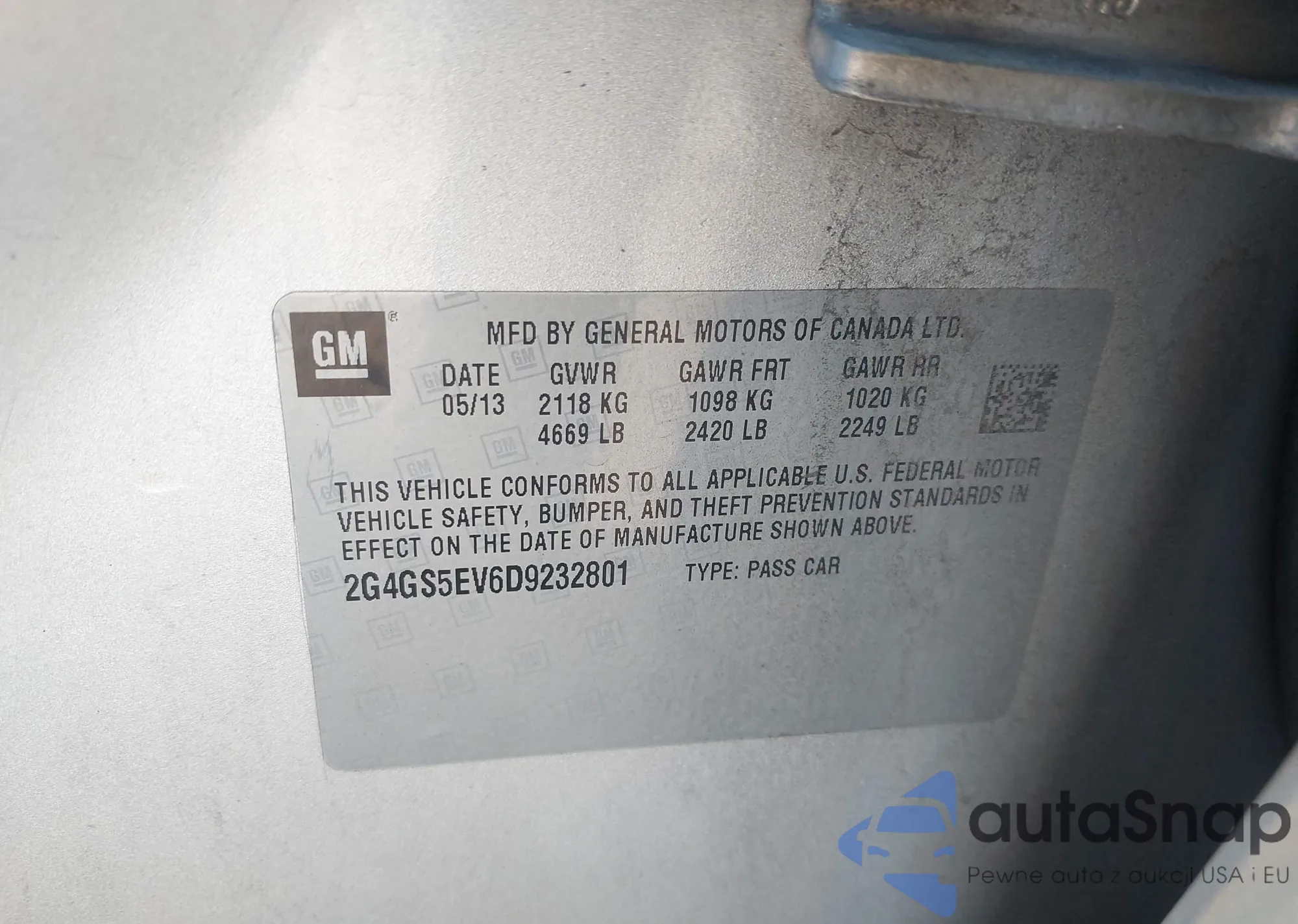 VIN: 2G4GS5EV6D9232801