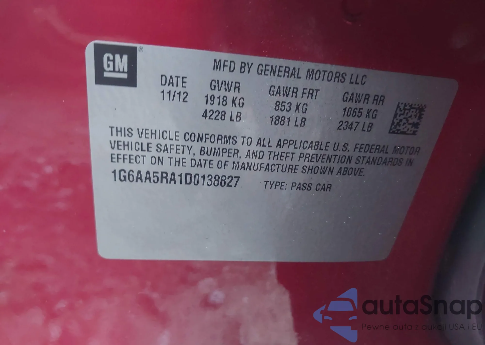 VIN: 1G6AA5RA1D0138827
