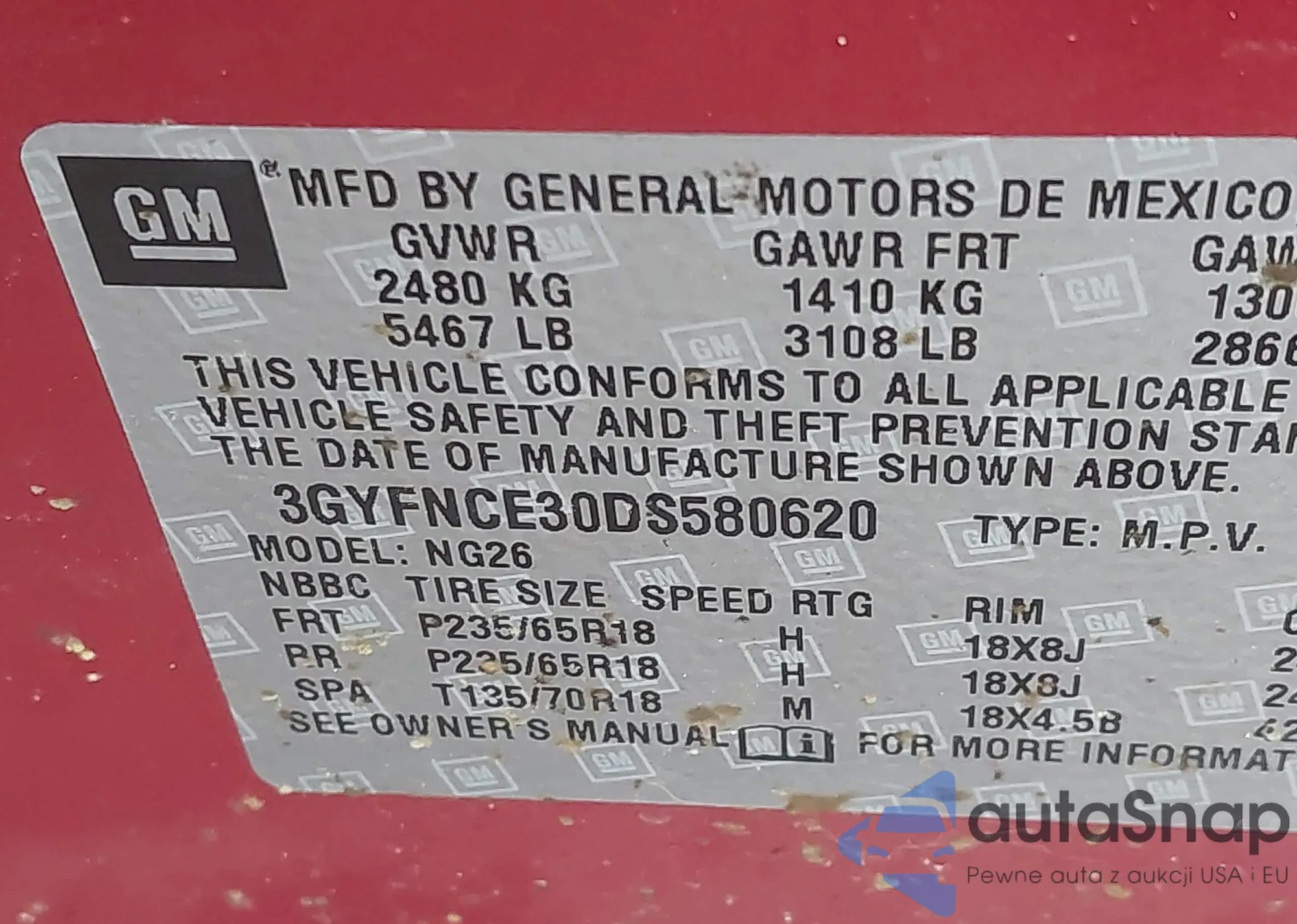 VIN: 3GYFNCE30DS580620