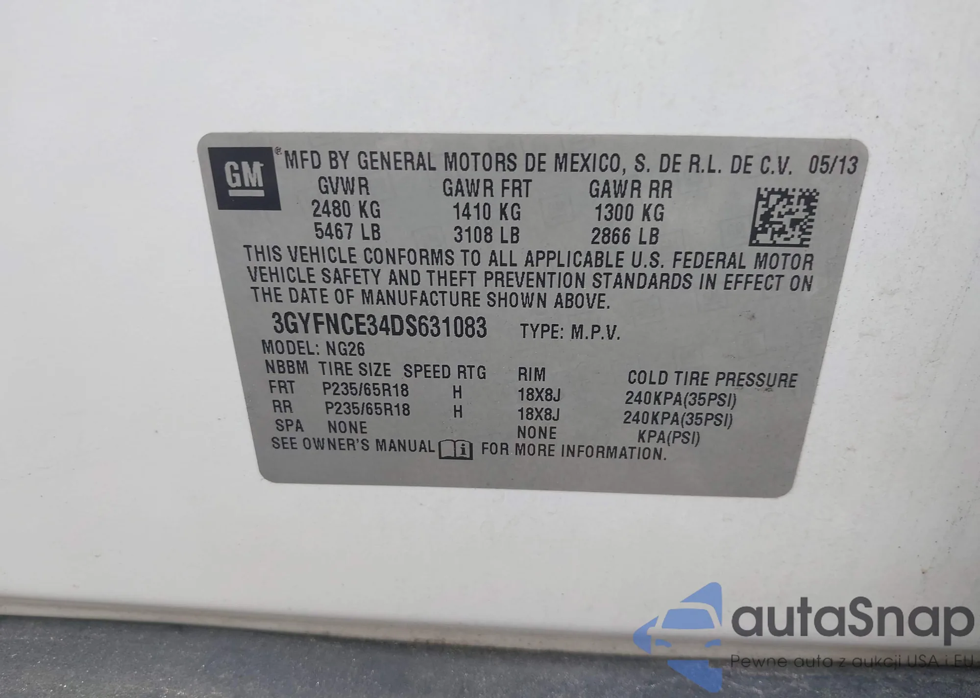 VIN: 3GYFNCE34DS631083