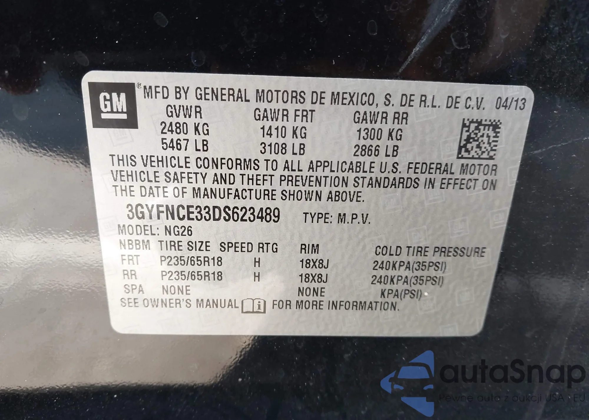 VIN: 3GYFNCE33DS623489
