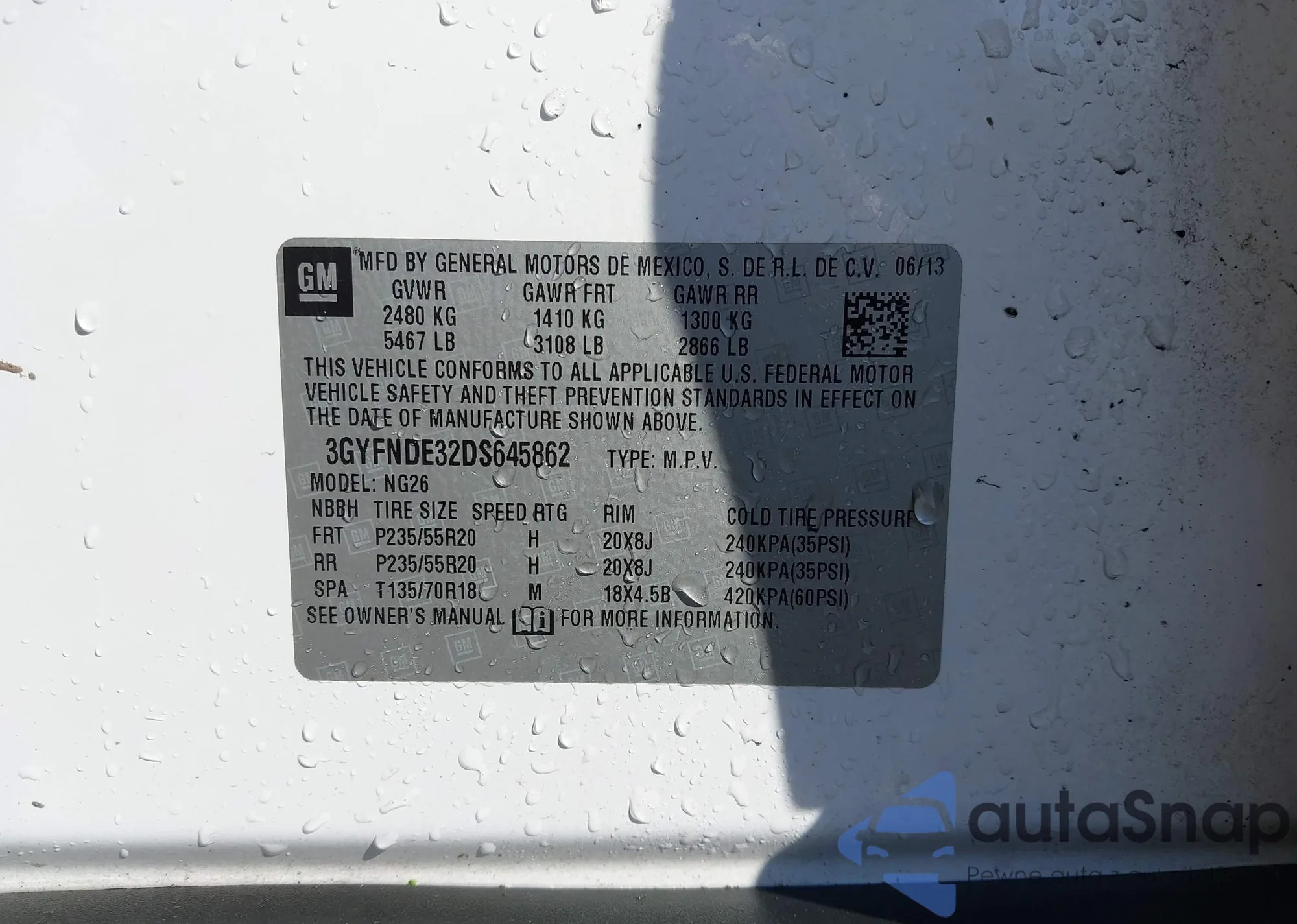 The car Cadillac SRX 2013 (VIN 3GYFNDE32DS645862) has not been auctioned before. The documents are clean, and the mileage matches or is below the market average. Sold by an insurance company – we recommend purchase. Delivery to the port will take approx. 6–8 weeks.