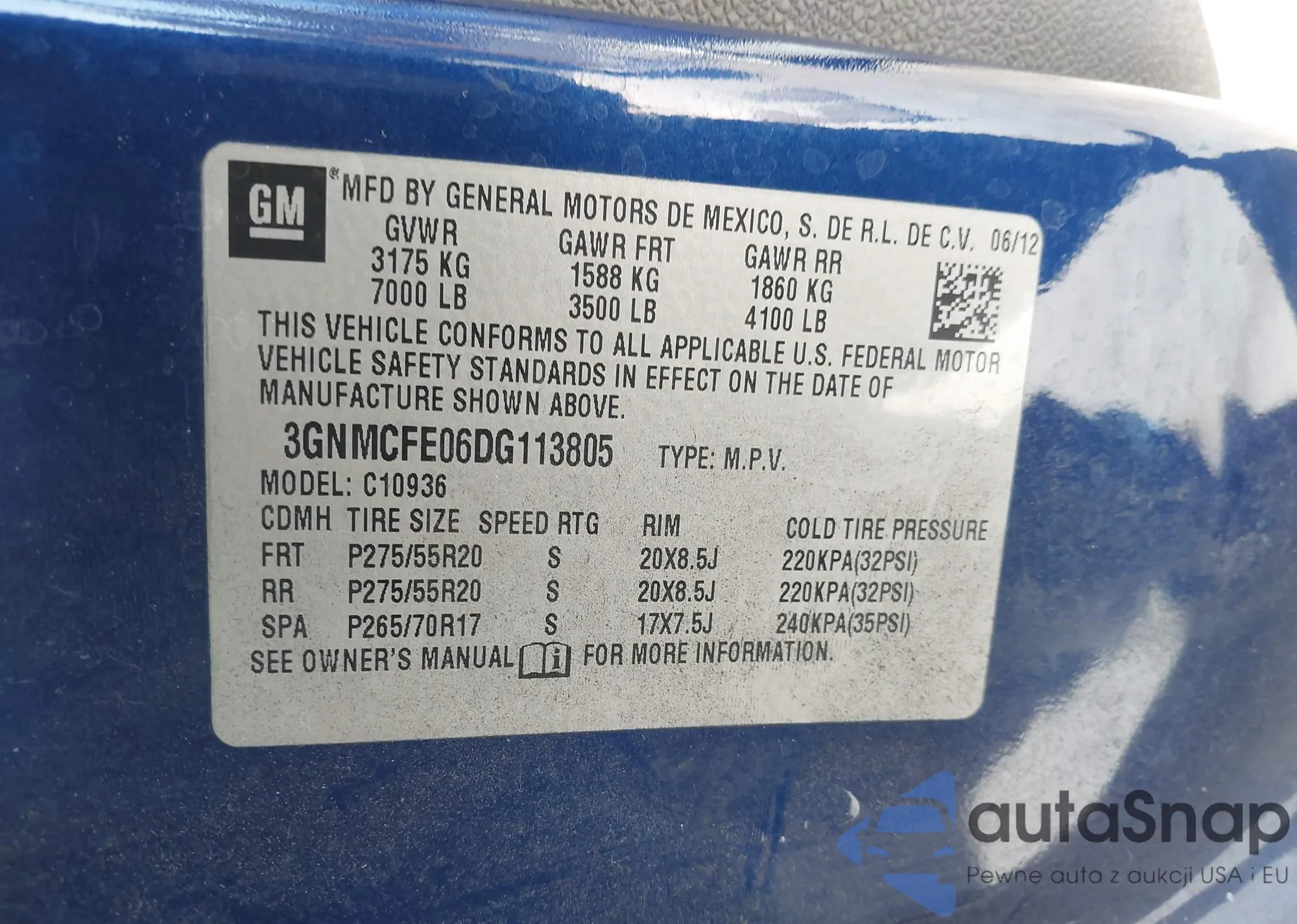 VIN: 3GNMCFE06DG113805