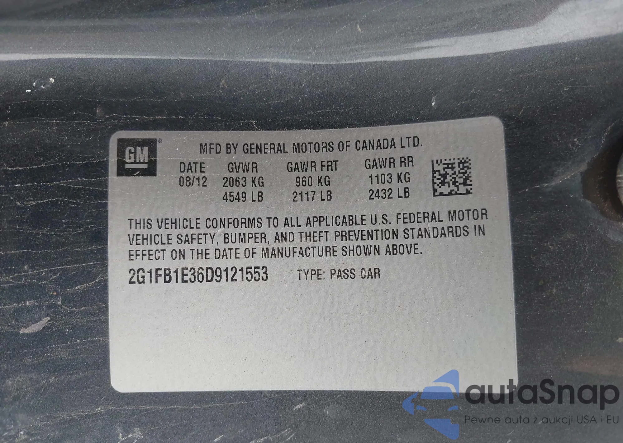 • VIN: 2G1FB1E36D9121553