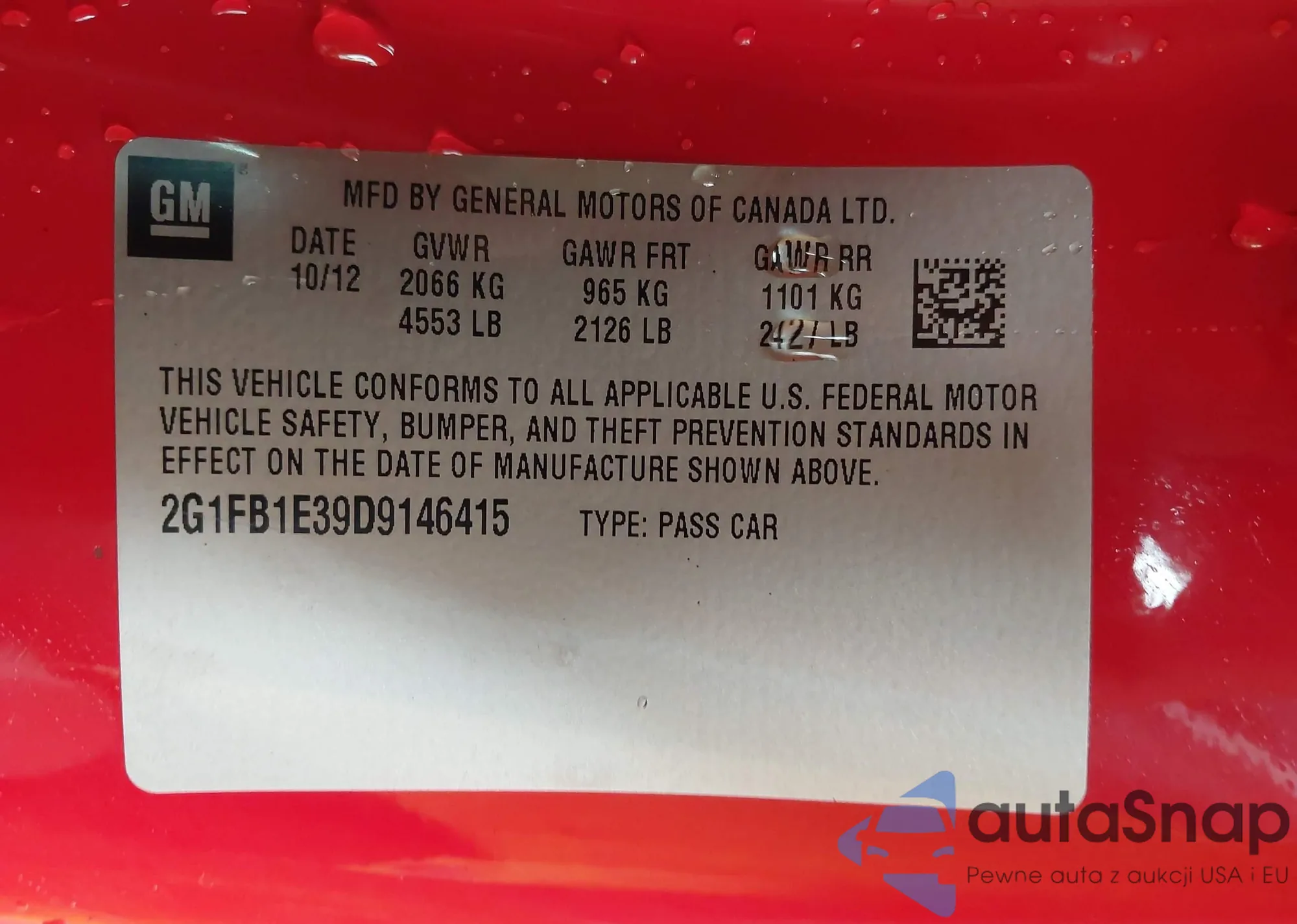 • VIN: 2G1FB1E39D9146415