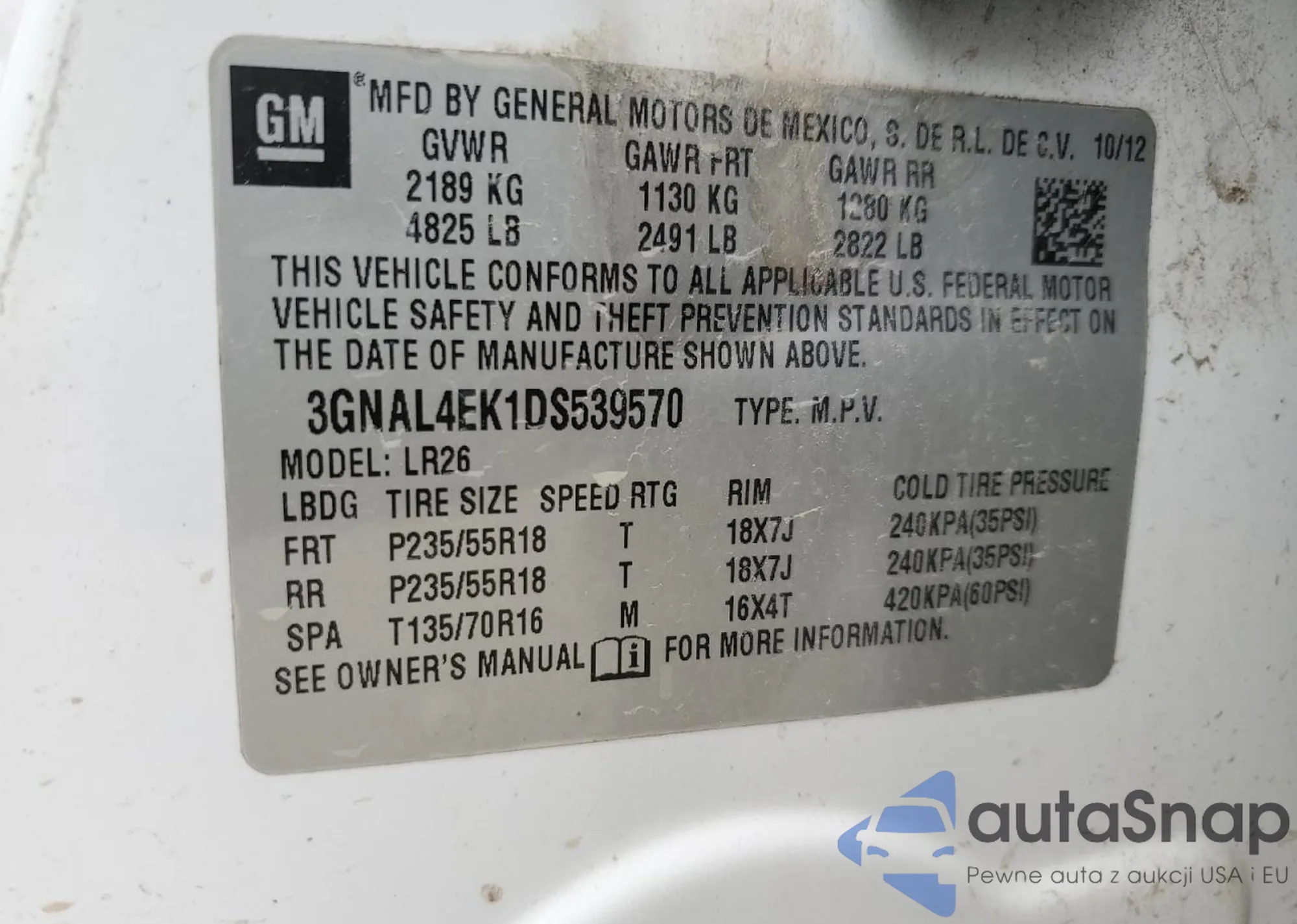 VIN: 3GNAL4EK1DS539570
